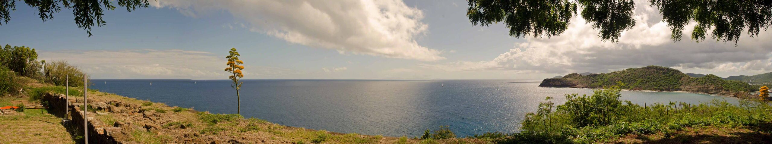 The evening before I had spoken with Claire, who along with Steve, was responsible for the finish line of the Guadeloupe – Antigua race and was asked along (perhaps because I admitted to a smidgen of French to assist in possible language difficulties on the VHF). So after completing my clearance formalities at English Harbor, much sped up with the new eSeaClear system, and returning to the boat for a coffee I headed out again at 11:30, tied up my dinghy in Falmouth, walked to the docks in English Harbor, took M&M’s water taxi to Galeon Beach and then walked up to the lookout point above the bluffs at the entrance to English Harbor.