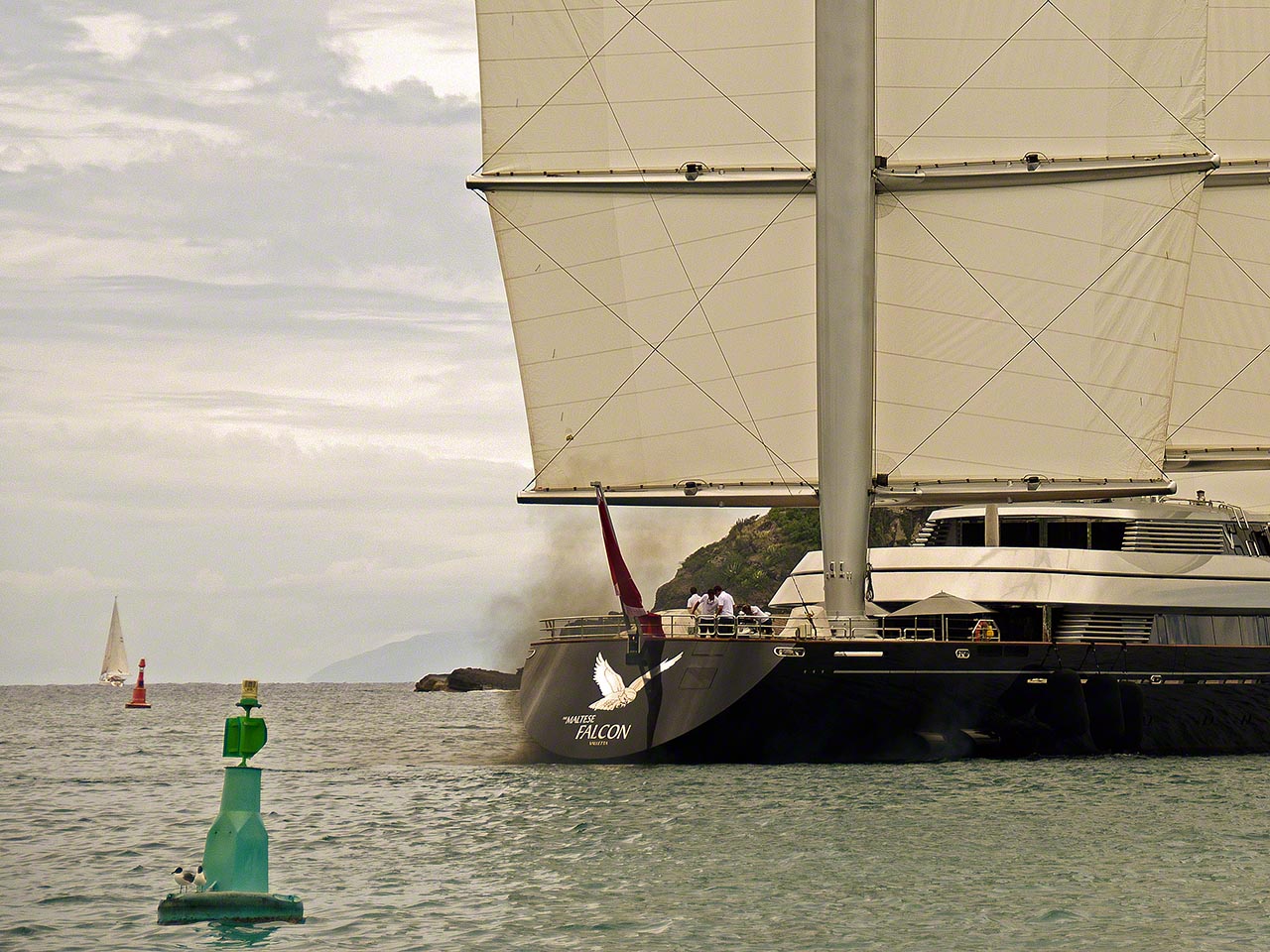 Today was the “Lay Day” for the Antigua Sailing Week and I’d arranged with Steve and Angela as well as Egil and Elizabeth that we’d meet up at 11AM at the dinghy dock and we’d head around to Green Island, which Hans had recommended to us as one of the nicest anchorages in the Caribbean. After we’d met and dinghied back to the boat we watched The Maltese Falcon sail / motor past us. Those were the only pictures I took all day – somehow the thought of holding the camera never came to me all day.