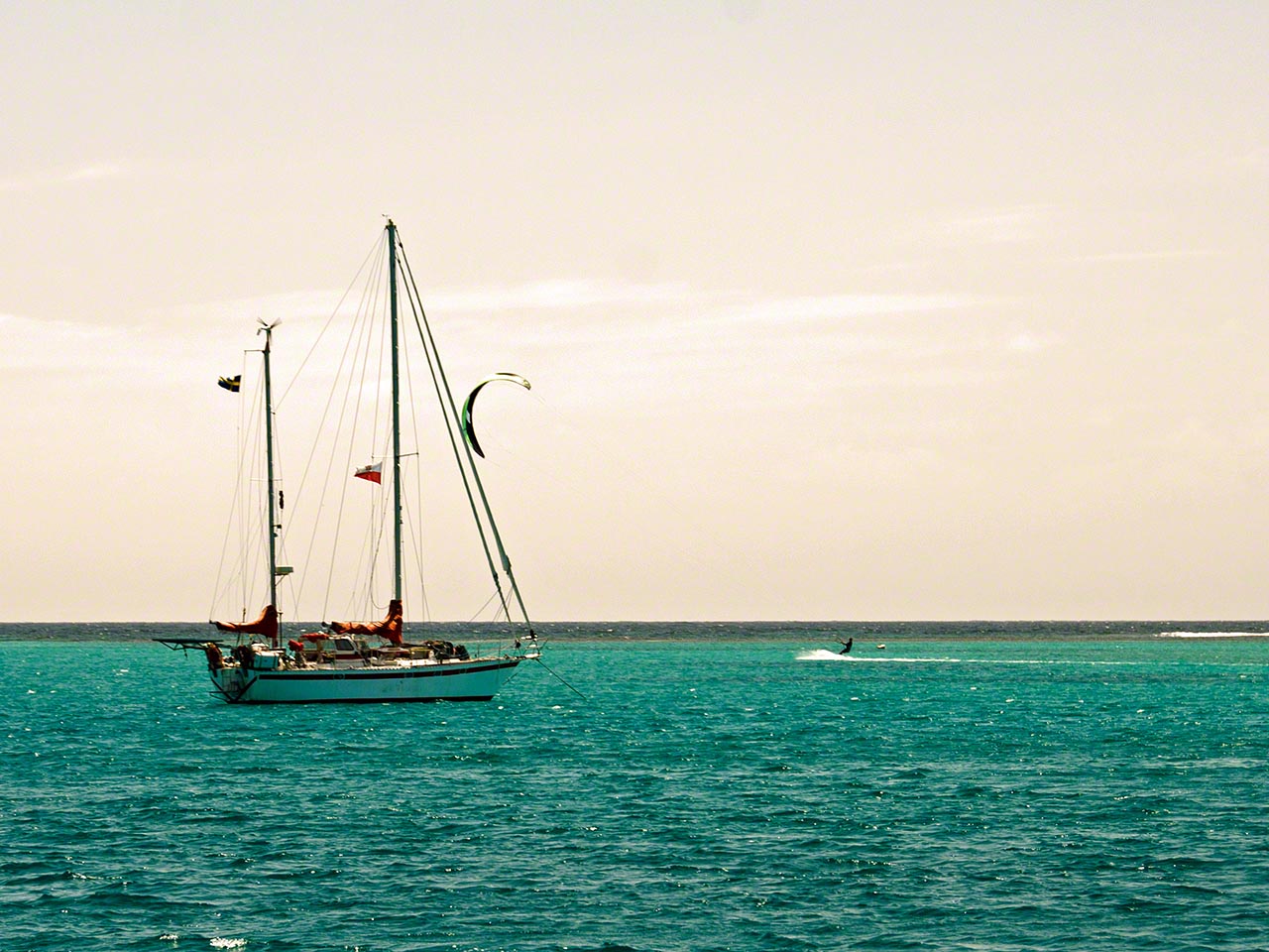 I stayed the whole day at Green Island, enjoying the very still waters inside the protective reef. The anchorage looks wide open to the wind and waves but is, in fact, very well protected from both and Zanshin hardly rocked at all, much better than the waters in Falmouth the past couple of days.
