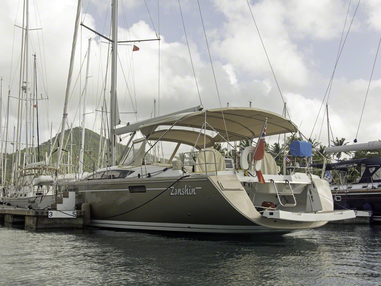 Finally, after having been here for over a week, I got Zanshin out of jail at the docks and departed. In typical sailing manner, I didn’t know where I was going to sail to until I untied the dock lines. Originally I thought I’d do the usual short sail across the Sir Francis Drake channel to Norman Island and the Bight& but changed my mind to use the light winds forecast for today and make it to the shelter of the North Sound before the strong winds returned on Saturday and Sunday. The sail felt absolutely wonderful, I was averaging about 6 knots with occasional 8 knots tempered by other times with just 4 knots. I got to reef and unreef the sails a couple of times as squall lines with rain passed through and all in all it was a great start to the sailing season and everything aboard the boat worked flawlessly (well, almost flawlessly, I need to check the autopilot settings for tacking since the auto-tack put me in irons twice). I sailed through the North sound entrance channel while a big ketch passed me with sails up (but engine going full-blast) and a mega yacht was on my tail and, to top it off, another mega yacht zoomed through the channel at speed with a towed dingy about 500 behind them. Their wake was so big that, even though I turned into it, I got splashed in the cockpit! But after getting into the calm waters of the North Sound Zanshin picked up speed and I was going 8-9 knots between the mega yachts at anchor while charter sailboats with their sails down were motoring much slower than I was travelling. I anchored off Prickly Pear in 40 feet of water and after I’d put up the anchor ball day shape and put the instruments and lines to sleep I rang the happy hour bell and had a well-deserved sundowner at about 18:00.