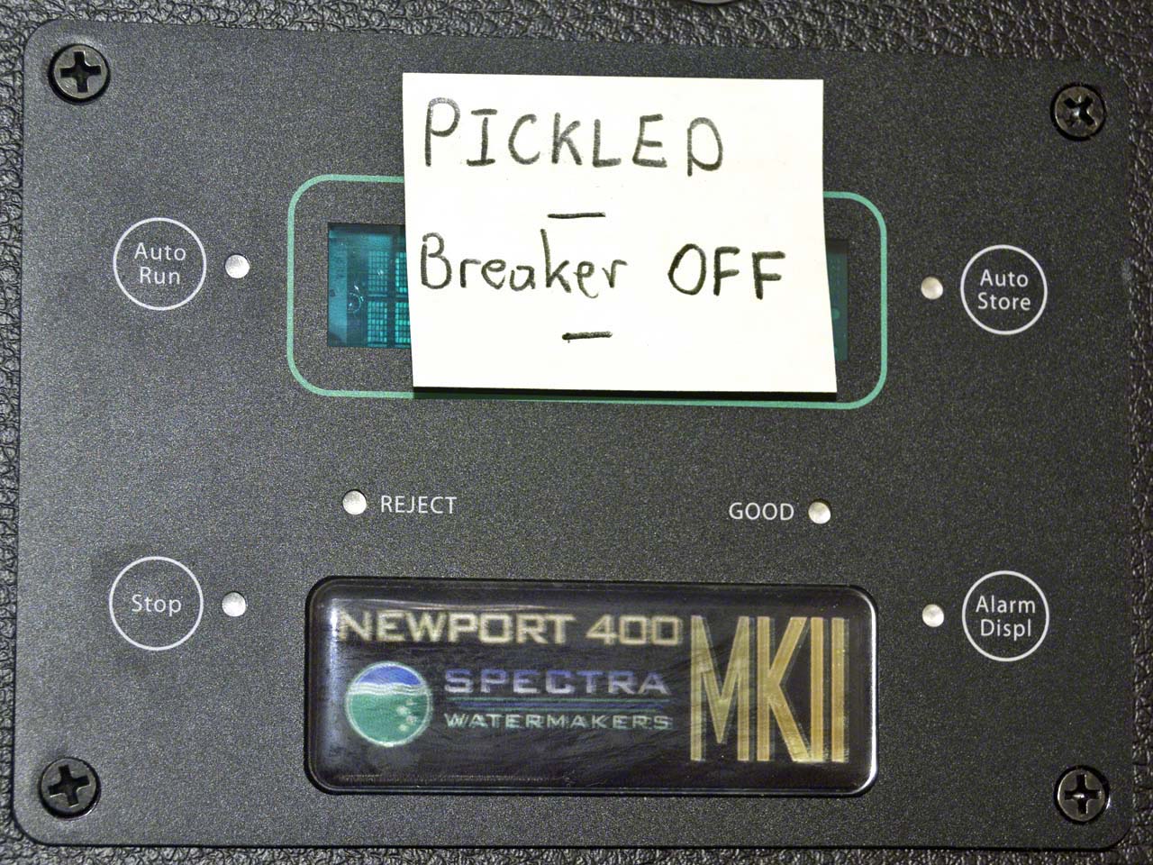 I filled one tank in the late afternoon, after ensuring that the generator worked correctly. During the 2 hours that I had the generator running I re-charged the batteries and also de-pickled the watermaker from it’s chemical storage solution and then filled up my water tank with freshly desalinated water.
