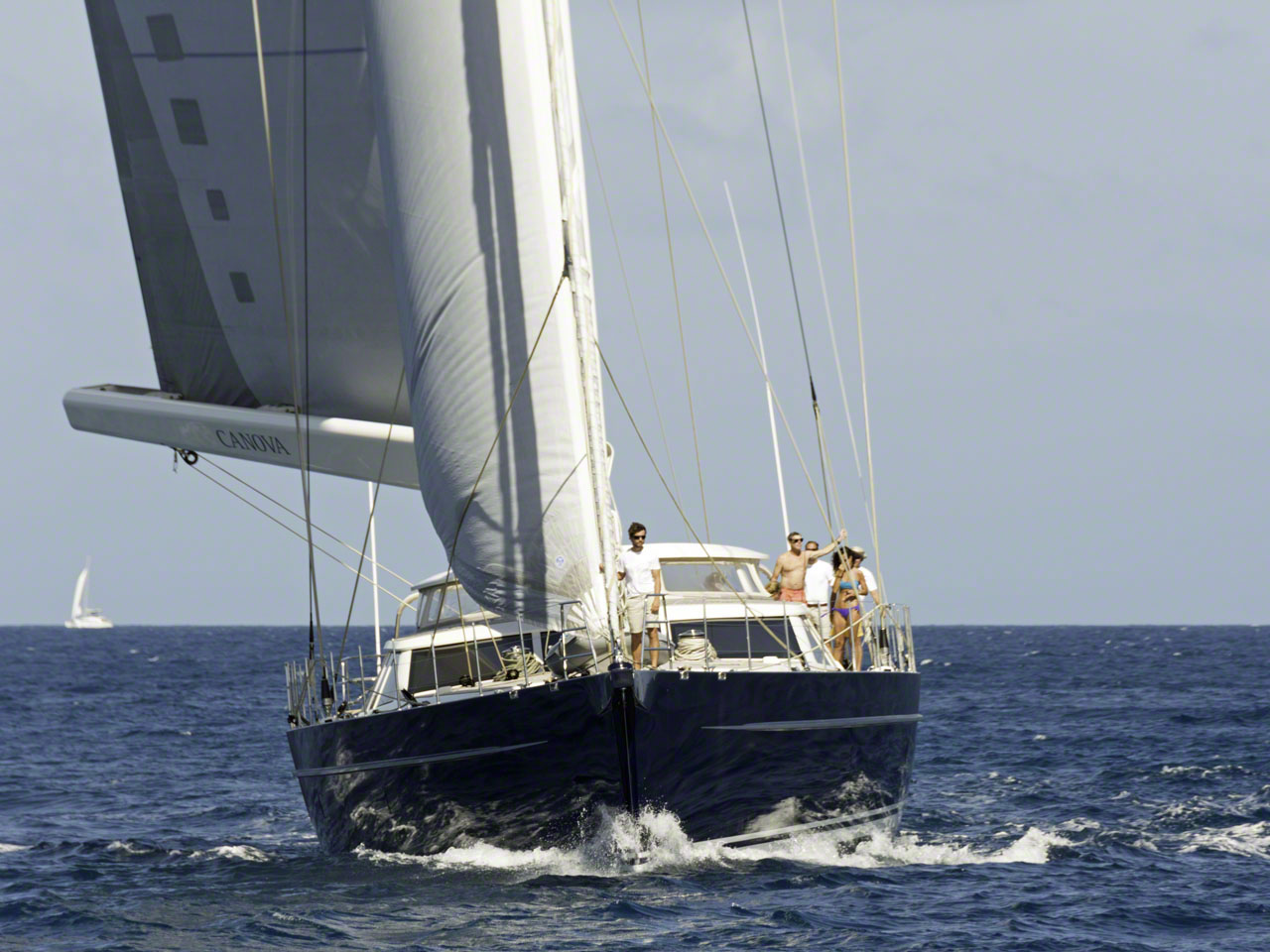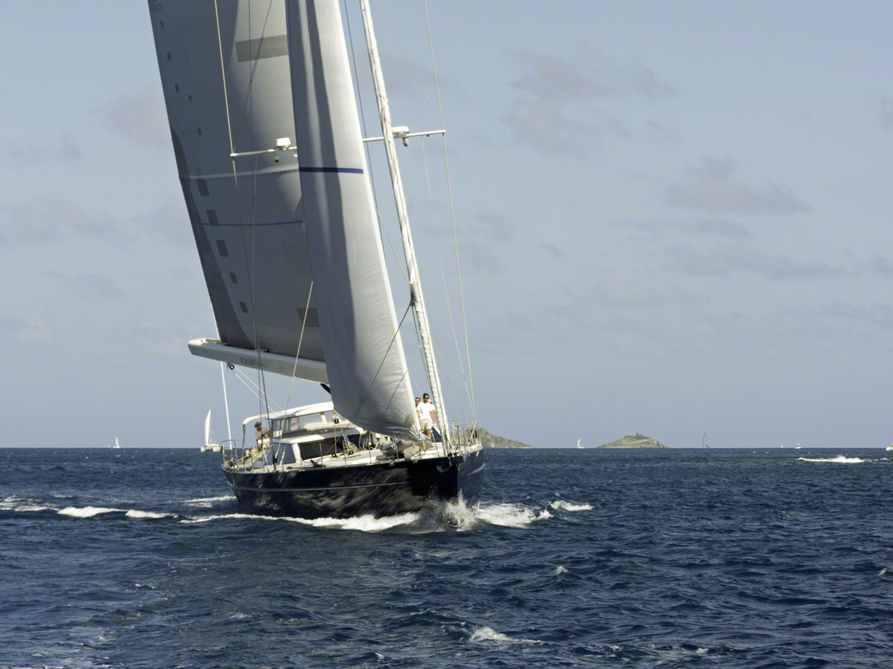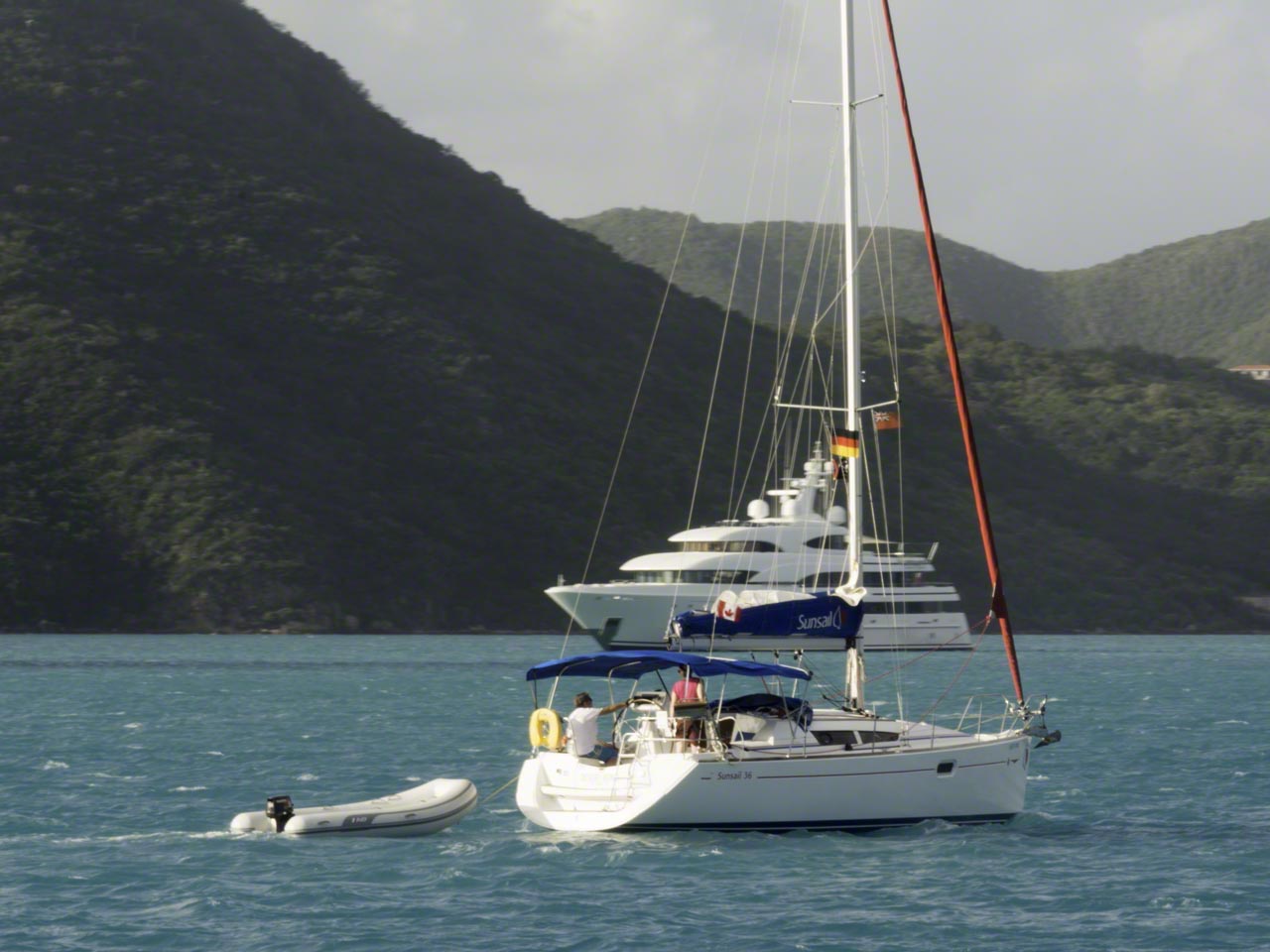 I finally got going about 10:30am and at first sailed towards Jost van Dyke, but then changed my mind and used the nice conditions to sail downwind at about 7 knots with reefs in both main and genoa. I sailed down along Virgin Gorda to The Baths, chased by Canova and then jibed downwind the Sir Francis Drake channel. I intended to jibe at The Bight for a run past the West End of Tortola and thence to Jost van Dyke, but opted to drop anchor after all and call it a short day.