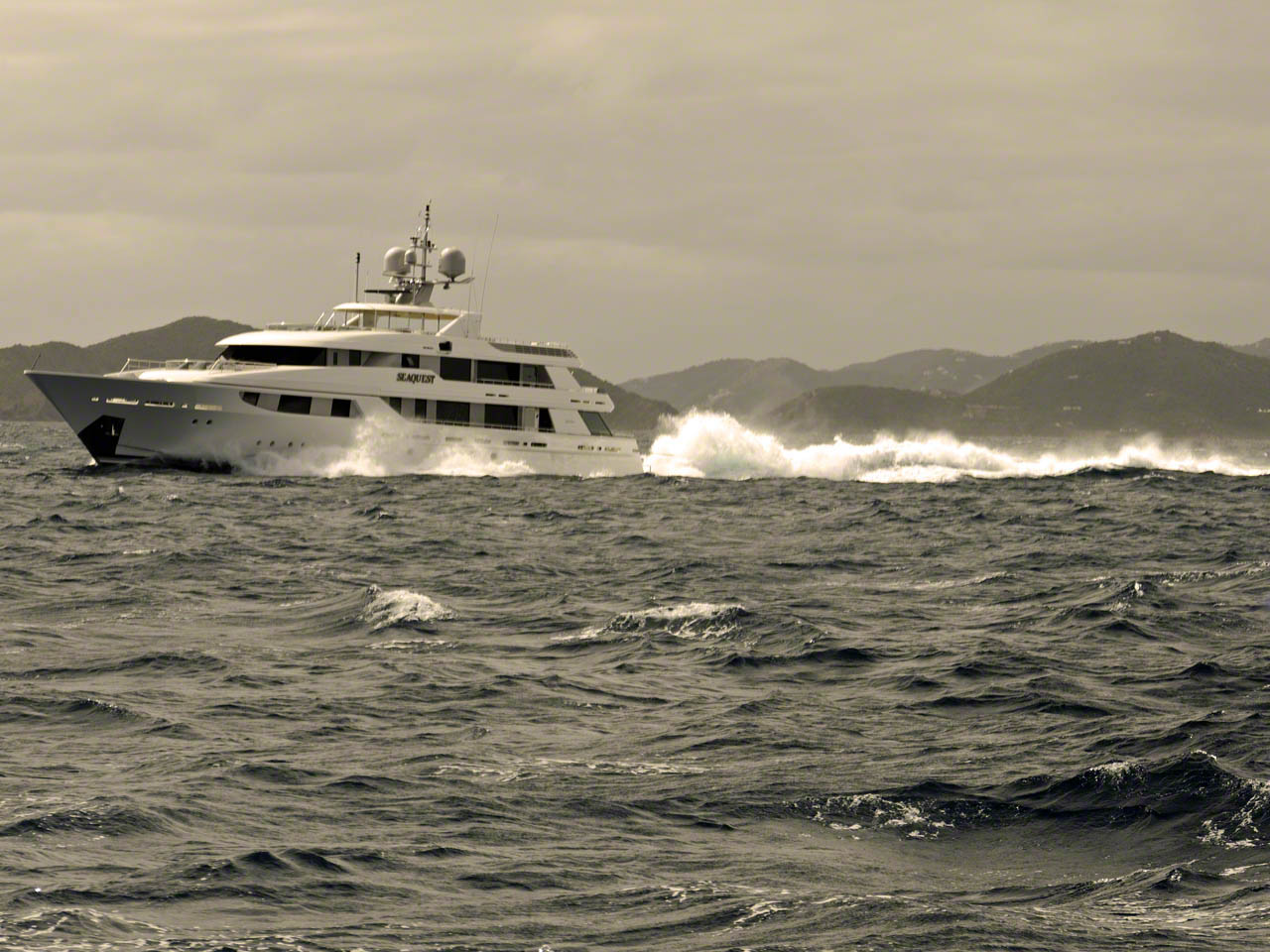 The anchorage at Guana Island is very calm, but the little gusts of breeze that do come through do so from all directions and I think that Zanshin spun around a couple of times during the night; luckily I do have a spinner joint between chain and anchor to take care of that problem. The seas looked very calm but when I motored around Monkey Point and prepared to raise sails I saw that the winds were in actuality pretty strong and I had 3 reefs in both sails and was still making good upwind speed as I headed for the distant Virgin Gorda and the North Sound. It took a long time to beat upwind, taking waves over the bow (those waves weren’t predicted, either) but the boat was perfectly balanced and most of the time I merely set the wheel lock and let her take care of herself. I’ve been sailing without the autopilot most of the time, mainly to get a feel for the boat again but also to practice for that time when the autopilot might fail on me during passage and when I don’t have the time to install the spare.