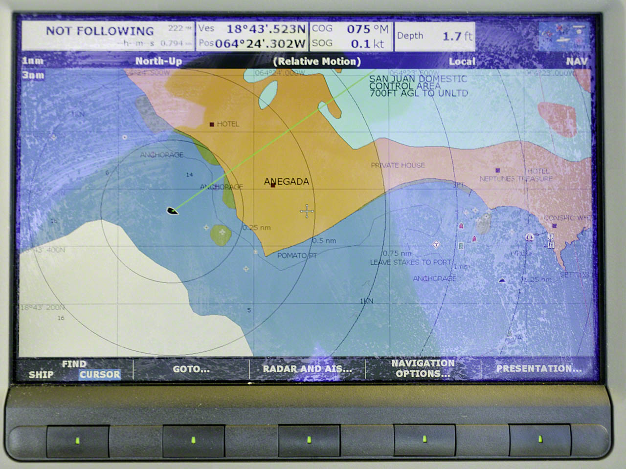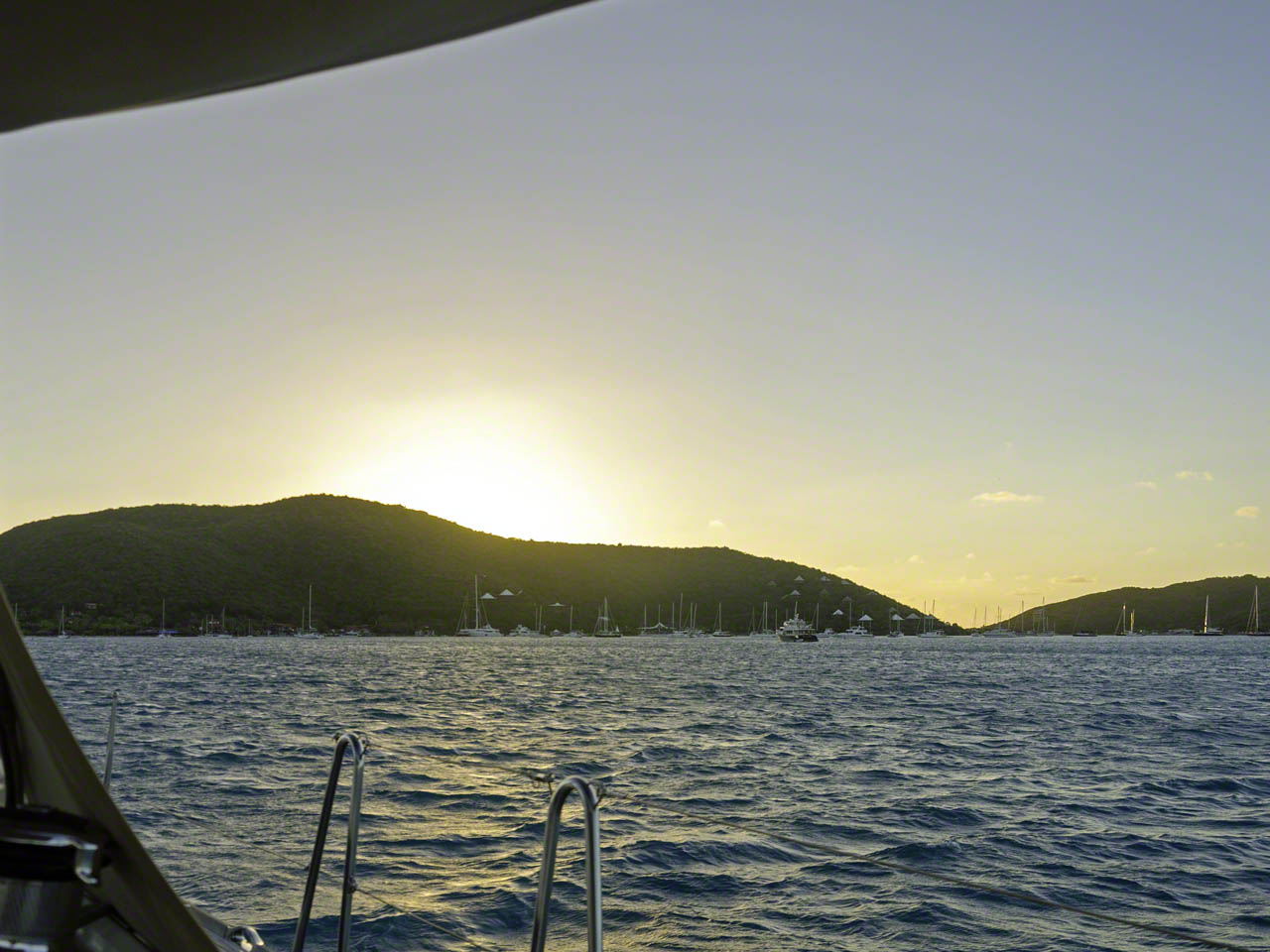 On the spur of the moment I thought I’d sail up to Anegada today and anchor in Pomato Point, as the weather seems to have settled. I departed and had a great sail to Anegada, with the wind directly on the beam and with 1 reef in both sails I was doing a very comfortable 8 knots all the way. I dropped sails outside of the markers and then slowly motored into Pomato Point, avoiding the reefs on the left and right. The sun was high in the sky so it was easy to see, but in the end I was in 10 feet of water, with just 2 feet indicated under the keel. I anchored and dove on it (plus to check if I really had 2 feet). The fathometer has about a foot of leeway but I didn’t feel comfortable where I was (plus the swell rolled around the corner) particularly as I didn’t know the state of the tide. If my 2 feet disappeared (it could have been a spring tide due to the full moon) then I would have no way out of the anchorage so I broke the record for the shortest Anegada stay, making an espresso after drying off from the dive and then I proceeded to carefully motor out of the anchorage until the water depth was 20 feet once again, then set sail and almost made the channel entrance on one tack. This time I anchored off Leverick Bay and I’ll head in tonight for the Happy ‘Arrrr show by Michael Beans and a good pizza or burger. I don’t understand the herd instinct with anchoring, I made sure to anchor far away from the mooring field and then a powercat (basically a catamaran without the mast) came in and dropped their hook right beside me; although there’s tons of room in the anchorage. I don’t think they set enough chain, either; I’m in 20 feet and they couldn’t have put out more than 50 feet of chain, if that much. At least if they drag it will be away from me.