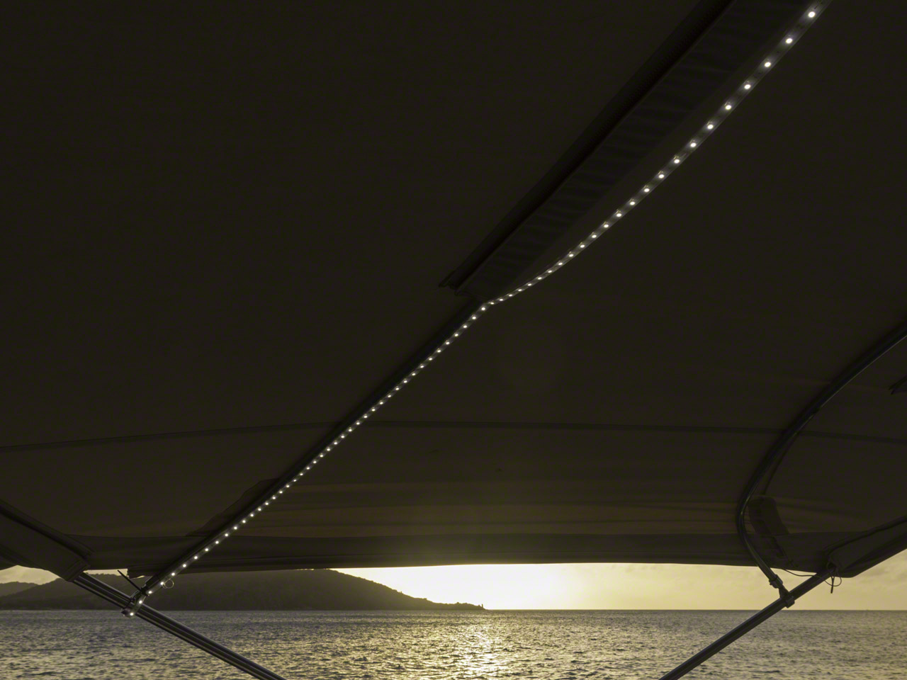 The problem with going to sleep so early is that one tends to wake up too early, making it feel less like vacation and more like work. The conditions in Grand Case aren’t amenable to long sleep at the moment, with the northerly component to the big 2 meter swell washing around the headland and making for a pretty rolly, and consequently empty, anchorage. But get up early I did and listened to the morning VHF cruisers network before doing some work on the computer. The showers coming through mean that I have to open and close the hatches all the time and the weather doesn’t look like it is going to change much today. If that remains the case I’ll do another dive at Creole Rock later on in the day and finish the LED installation in the cockpit. One of my crimped connections is flaky despite looking acceptable and I will have to replace that sooner rather than later.