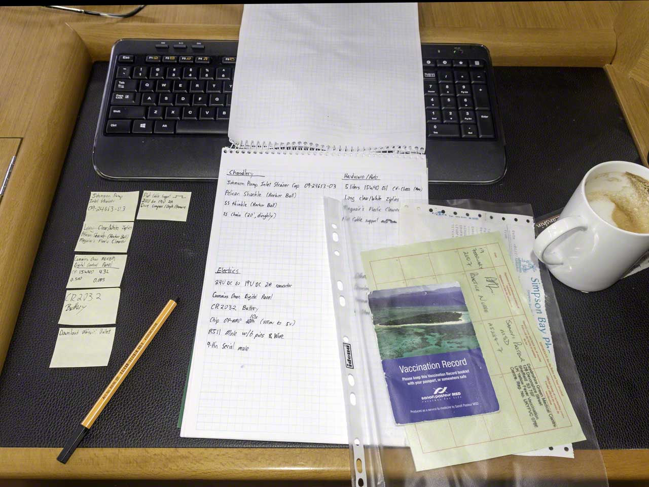 Then the real work began and I started working on the items on my list. The first stop was the dive shop where, much to my surprise, I found out that I didn’t have to replace the whole high-pressure hose assembly to the pressure/depth gauges, but just the housing and I got an extensible pole for the GoPro camera and a little compass so that I don’t get completely lost underwater. Plus I got a spare filter for the dive compressor. So my total bill was about what I’d expected, just the items making up that (impressively high) price ended up being different. After that was a set of small speakers for the notebook so that, when I do decide to watch a movie, the volume would be louder than a small anaemic mouse whispering. Then I hit Electec for the electrical stuff and now have a small RJ11/RJ45 crimper, some male plugs, 6 strand wire and some DB9 connectors so that I can attempt to debug my refrigerator plus pickling solution for the watermaker (since I used up my supplies last year and I think it is better to stock up when one can). Then trips to Island Waterworld and Budget Marine interspersed with a visit to Lagoonies for lunch and to connect to the internet. There I met Bernd and Carmen from Mau as well as Mark from Sea Life. After the late sandwich I went back on my shopping spree but the credit card had a bit of time to cool down since the items remaining on the list were getting harder and harder to find. But my big list had already been whittled down to a small list and I was quite pleased.