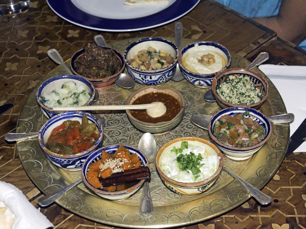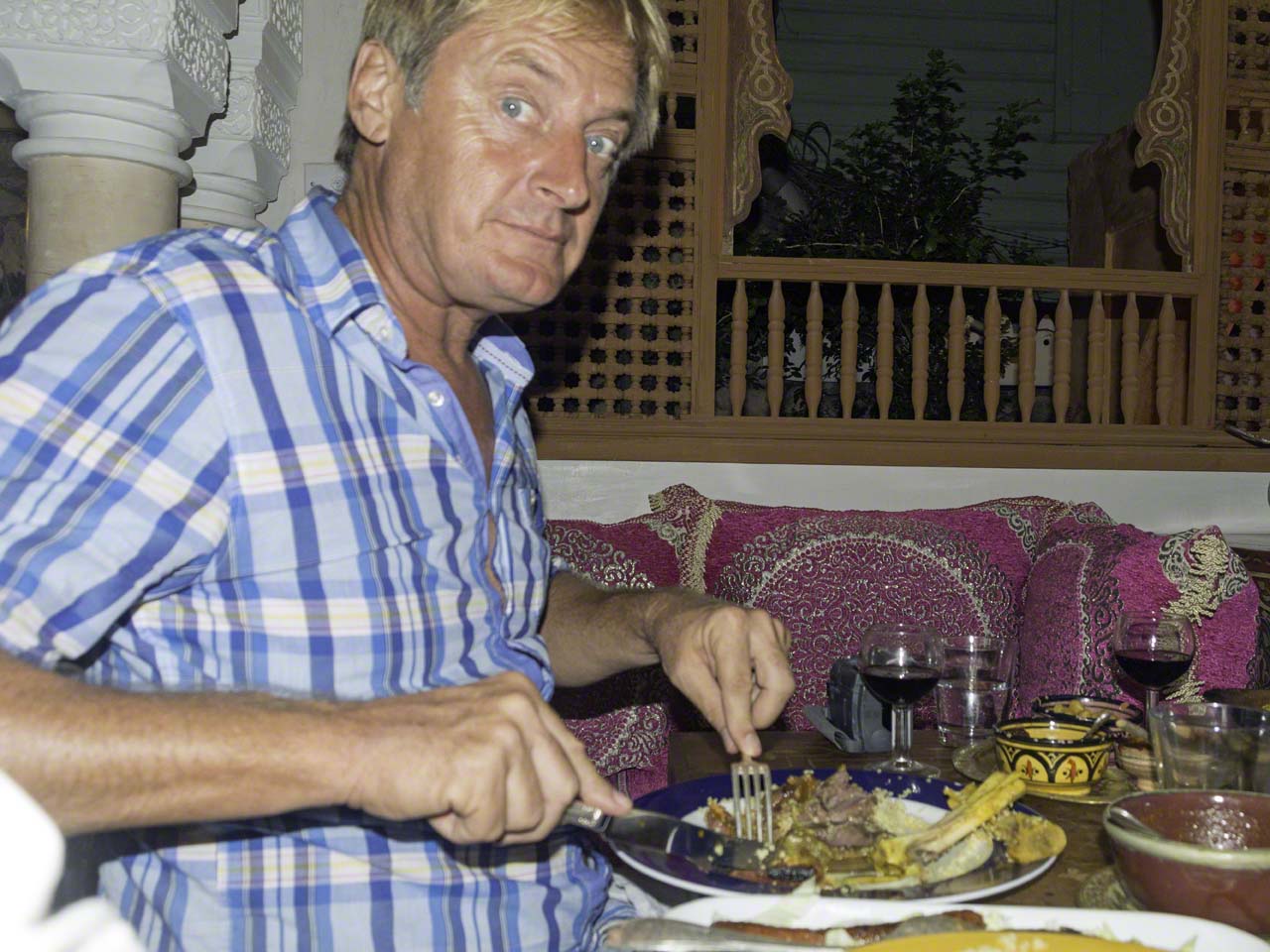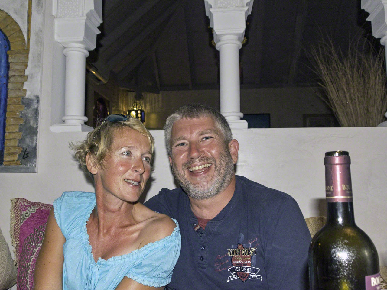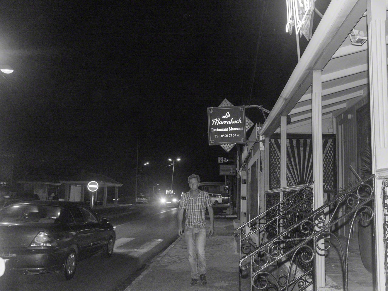 I was to meet Carmen, Bernd and Mark at Spinnaker’s in Port Royal at 18:30 for a drink before heading off to a Moroccan restaurant in Marigot but the delays with the bridge and getting propane and doing my final chores meant I wasn’t able to return to the boat to shower and change but I did have a reserve clean T-Shirt in the car so ended up stopping at Lagoonies again to do e-mail and internet and then proceeded directly to Marigot to meet my fellow diners. I parked close to the restaurant and walked to our meeting point and after some conversation we headed off to dinner. The restaurant is called Le Marrakech and was a very pleasant surprise as the inside decor was tastefully done and gave us an intimation that the food was going to be very good. We ordered some appetizers and Moroccan wine and once the food arrived we dug in and it was excellent. Then the main meal arrived, in waves, and it was not only incredibly tasty but the portions were American sized as well and none of us had a hint of a chance at finishing our food.