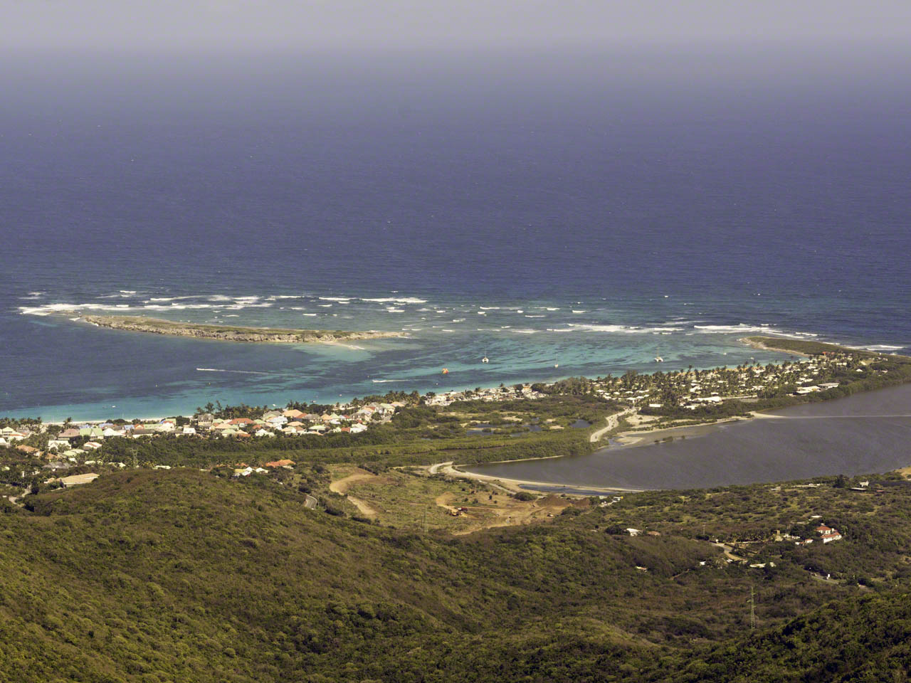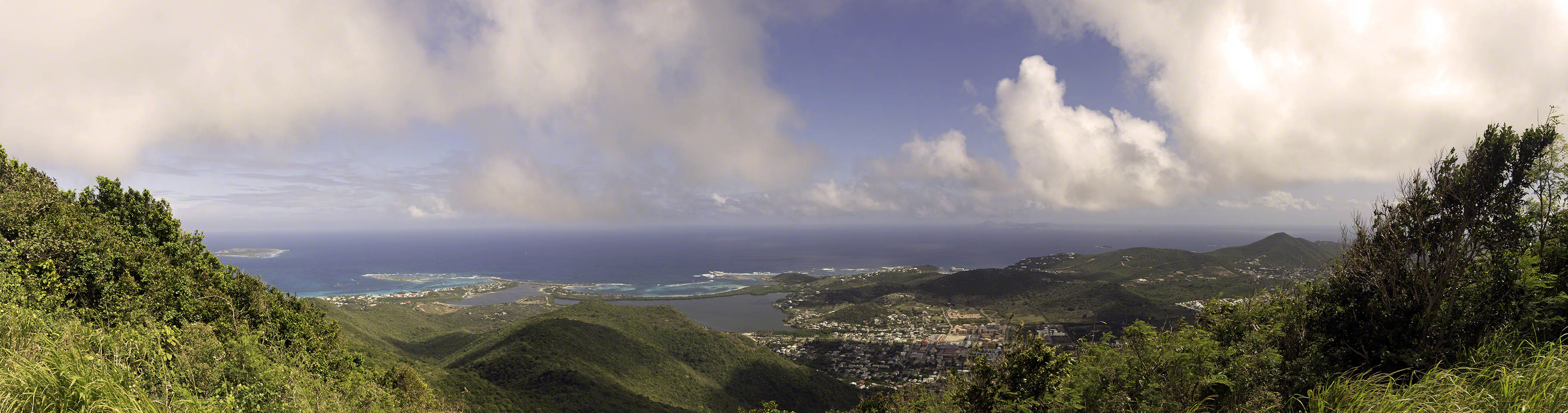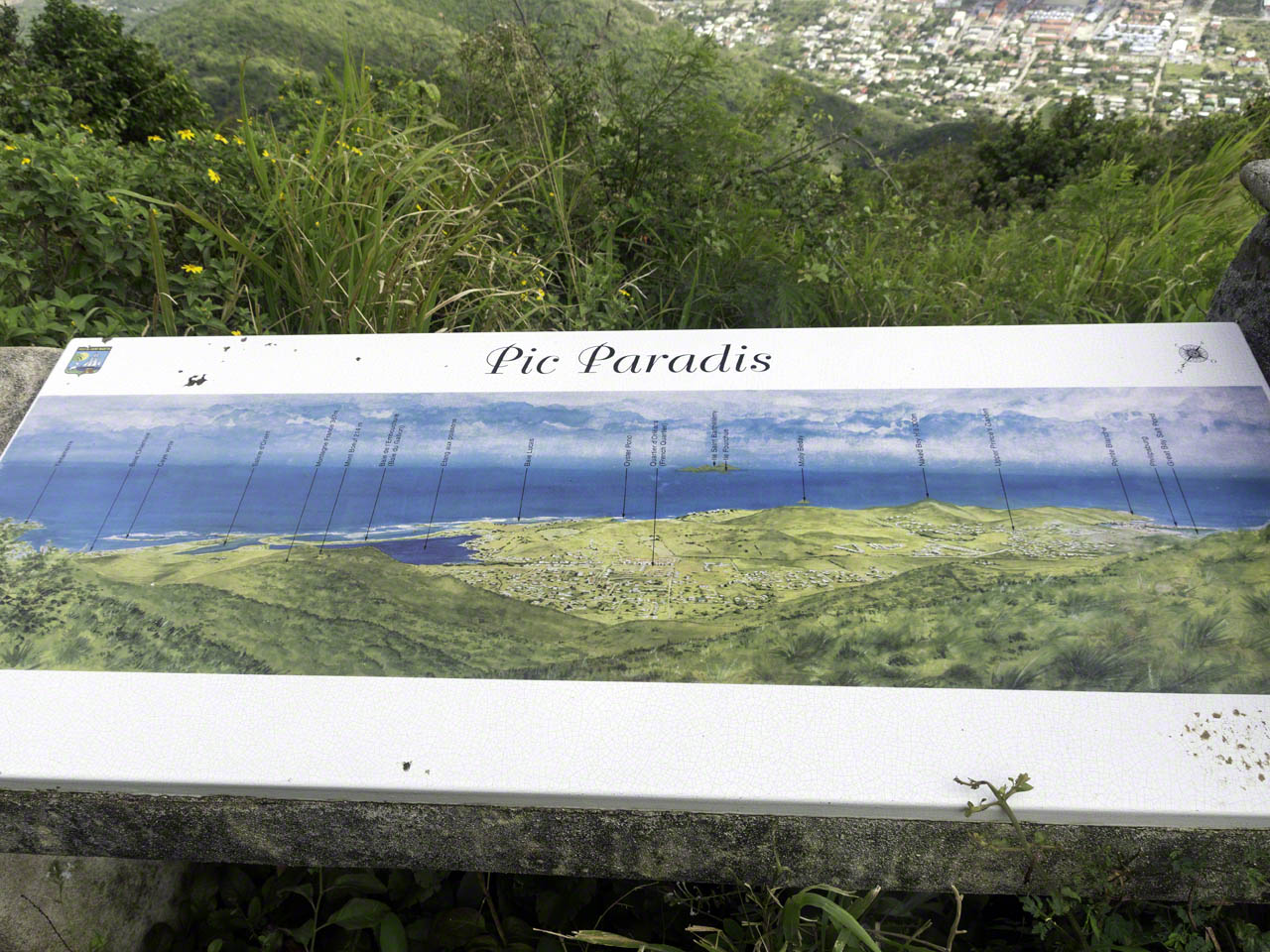 On the way back to Marigot I saw a small sign for Pic Paradis which I’d heard from Mark was the highest peak on the island, so I detoured up the small road and despite being alone in the car and in low gear I wasn’t making much headway until I turned off the A/C – those couple of horsepower made a big difference and once parked at the end of the road and walking up a shot but steep path I was rewarded with a wonderful view down the hill with a vista going from Tintamarre all the way to St. Barths. I spoke with a family vacationing from southern California and we looked for a suitable photo location on the other side before returning down the hill.