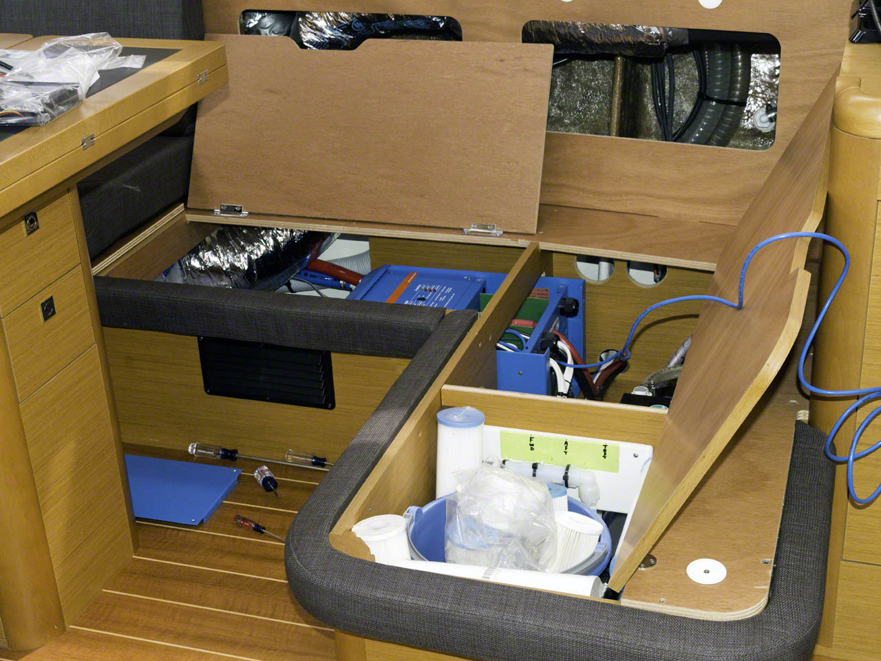 I opened up the Victron charger to attach the cables for two ventilation fans I’d purchased so that the airflow around the inverter/charger would be enhanced. After looking at the way the ventilation was currently routed I realized that the fans weren’t necessary but before I closed up the system I saw that they had hooked up the temperature sensors but had not connected the voltage sensor. I hooked up the digital output from the Victron to my PC and saw that there was a voltage drop of 0.3V between the charger output and the battery bank so I decided that the voltage sensor would make a difference, but of course I didn’t have the right connectors or cable aboard so I couldn’t finish that job.