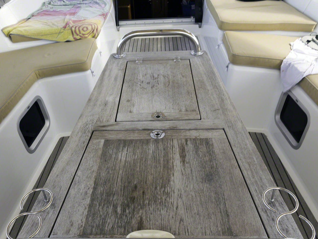 Much of the work was preparation. Now that I think about it, almost all of the work was doing things other than sanding! I first washed the table lightly with a mild soapy solution to get the dirt lifted and then let it dry. While it was drying, I removed all of the stainless fixtures and hinges so that the surfaces could be easily sanded and then cleaned the two storage areas. This might not have been a wise investment in time since I had to clean them again afterwards.