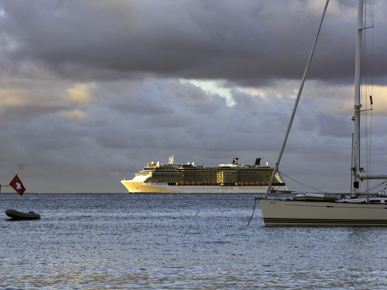 It is time to head off again, and I needed to provision a bit so I shared the cost of a rental car with Stephen and the family on Katzenellenbogen. We got a Hyundai and the five of us headed off for some shopping on Front Street in Philipsburg. Despite not having any plans for buying anything except a circular polarizing filter for the Sigma lens on my camera I ended up spending more than I’d planned on – I now have new sunglasses from Serengeti and finally replaced my old backpack, which had done heavy service for a couple of seasons and was literally falling apart at the seams. After the main street we went to Cost-U-Less and subsequently to Grand Marché and I’ve now turned my second unit back to a freezer from its duty as a fridge so that I can freeze all the beef that I’d purchased. I even got some Edamame in the freezer for those special happy hour occasions and don’t think I’ll be able to stock up again until I hit Guadeloupe.