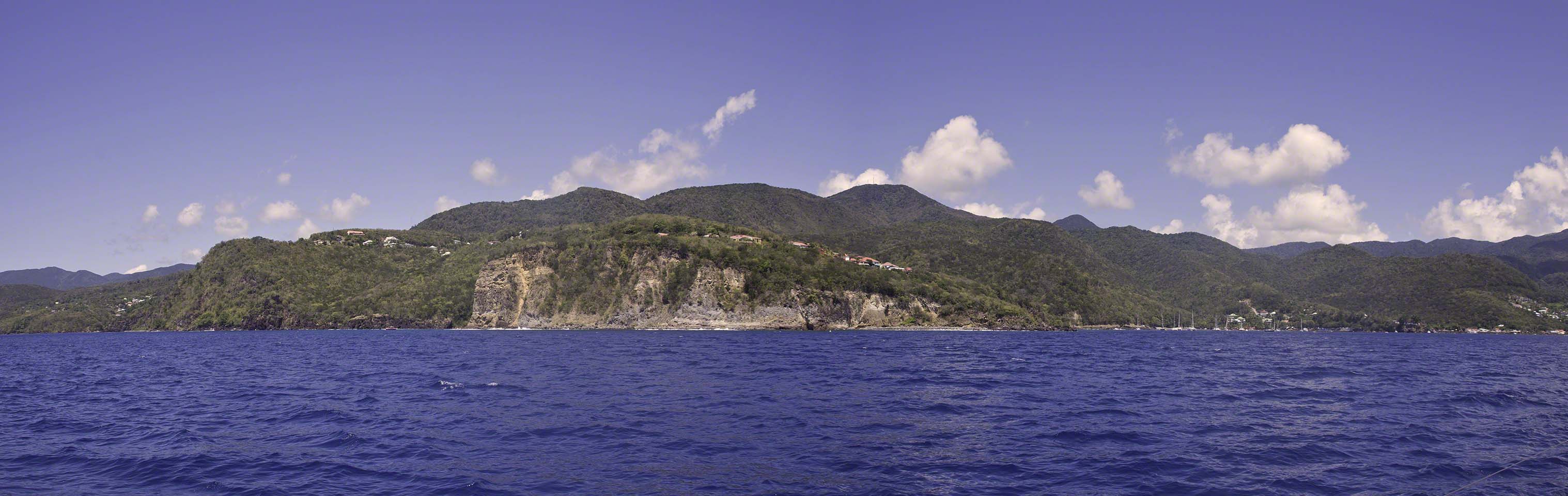 Although it took a long time to leave, today saw my departure from Deshaies. I was going to sail along with Katzenellenbogen and they had some issues that required them to stay on the internet so we didn’t leave until after lunchtime and they left before me. When I started lifting up my anchor I encountered issues, a French ketch (the one in silhouette from the previous day’s pictures) had anchored quite close to the line of my anchor chain and as I was raising anchor an English ketch came in and anchored over my anchor. I called to the French boat and asked if he could motor forward a bit to let me raise my chain; as I couldn’t use the steering position remote because the panel read āSensor Errorā and when lifting forward the wind, which was gusting to 24 knots at the time, would swing my bow precariously close to the French boat. He declined – at first saying that he had a very short scope and then saying something I couldn’t catch. The British skipper was even more barefaced liar, when I asked him to motor forward so that he wouldn’t be over my anchor he stated that ā“I don’t have an engineā although he’d just motored in against the wind with just his mizzen sail up… I got the anchor windlass reset and managed to raise the chain and use forward gear and the bow thruster to ensure that I didn’t hit either ship to left or right and was rather dismayed at the lack of assistance both boats gave!