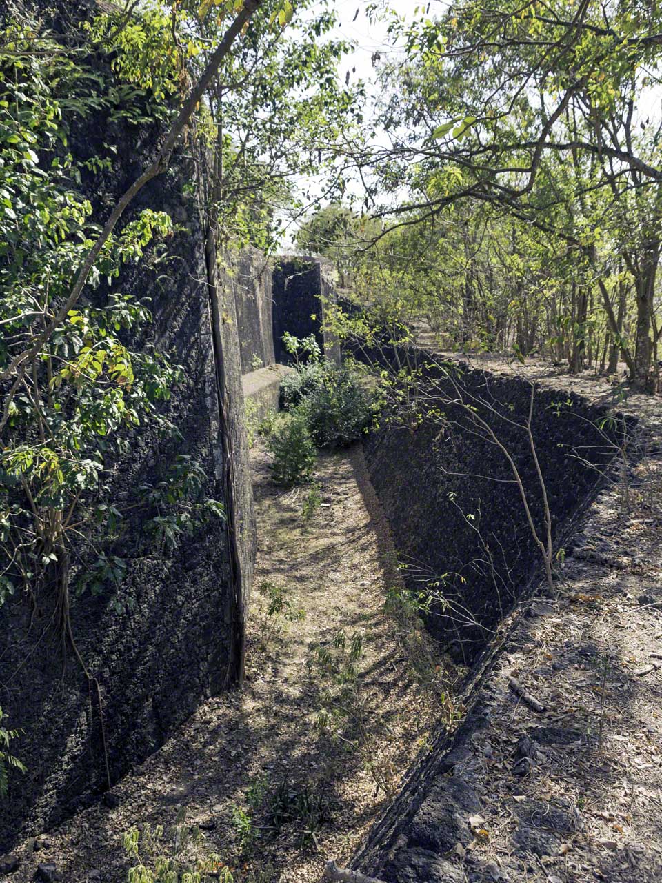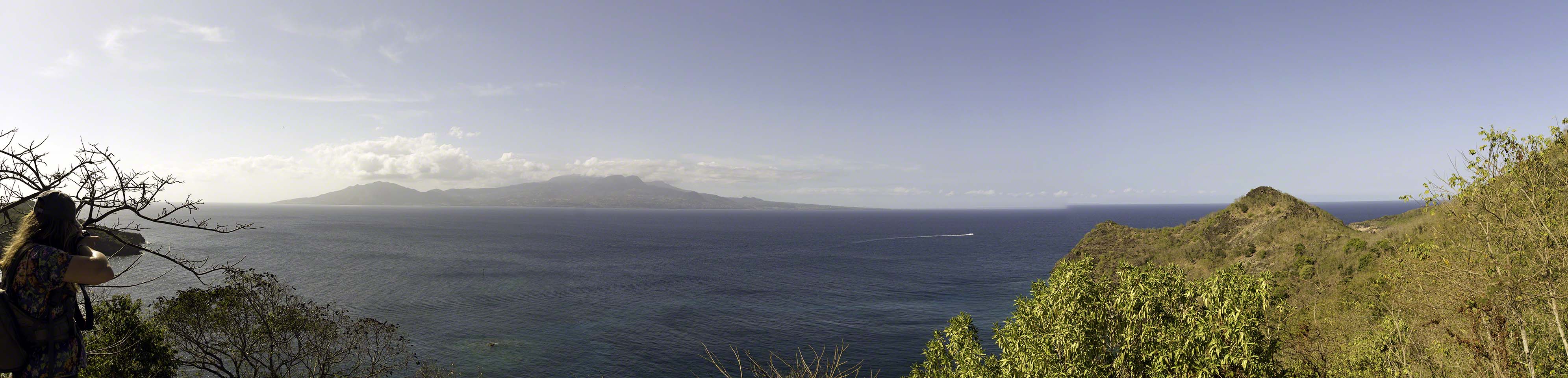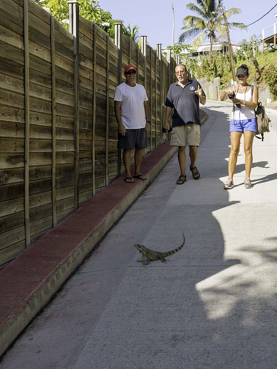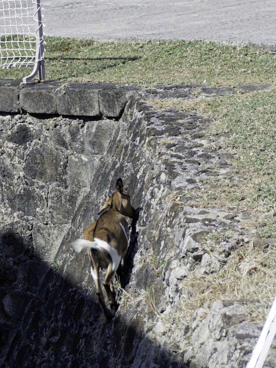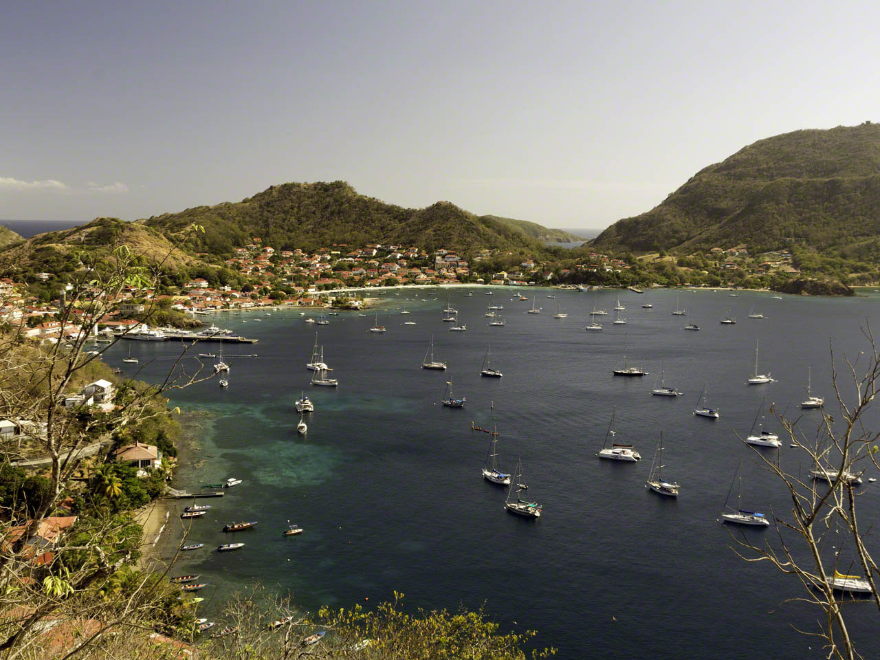 I’d discussed touring the Fort with the crew of Katzenellenbogen the previous day and we’d thought about a morning visit, but it was about 15:00 before we actually got going, with Ken from Rocking B driving his luxurious dinghy with myself, Philaine and several garbage bags aboard while Stephen drove Tayne and Michaela aboard theirs – luckily my anemic and inferior dinghy got to stay in the anchorage. Ken’s dinghy is a large one, with a 4-stroke 20 HP engine and small console with real seats, it carves it’s way through the waters rather than pounding on top of them as does mine. We soon arrived at the dinghy dock, disposed of our garbage and were climbing the hillside road to the small hill overlooking town atop which is Fort Napoleon. Normally there’s a lot of moped and vehicle traffic going up and down this road, but it was oddly empty of passersby and once we’d reached the top we realized why – the museum is only open until 12:30 and closed in the afternoon. Although we couldn’t enter the Fort itself, we could walk around the battlements and enjoyed the scenic views from the hilltop before returning to town.