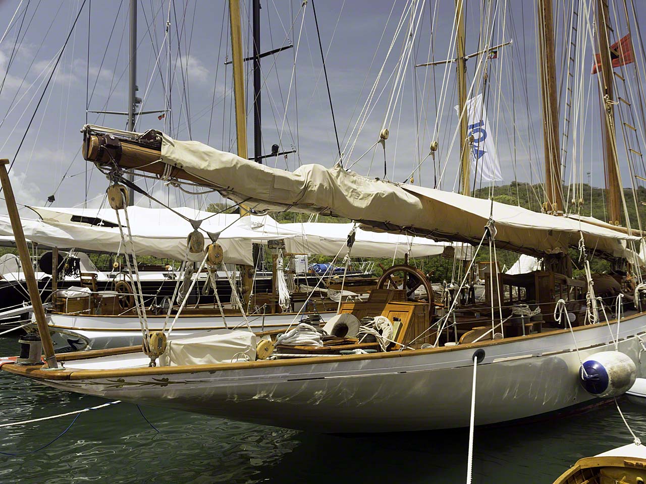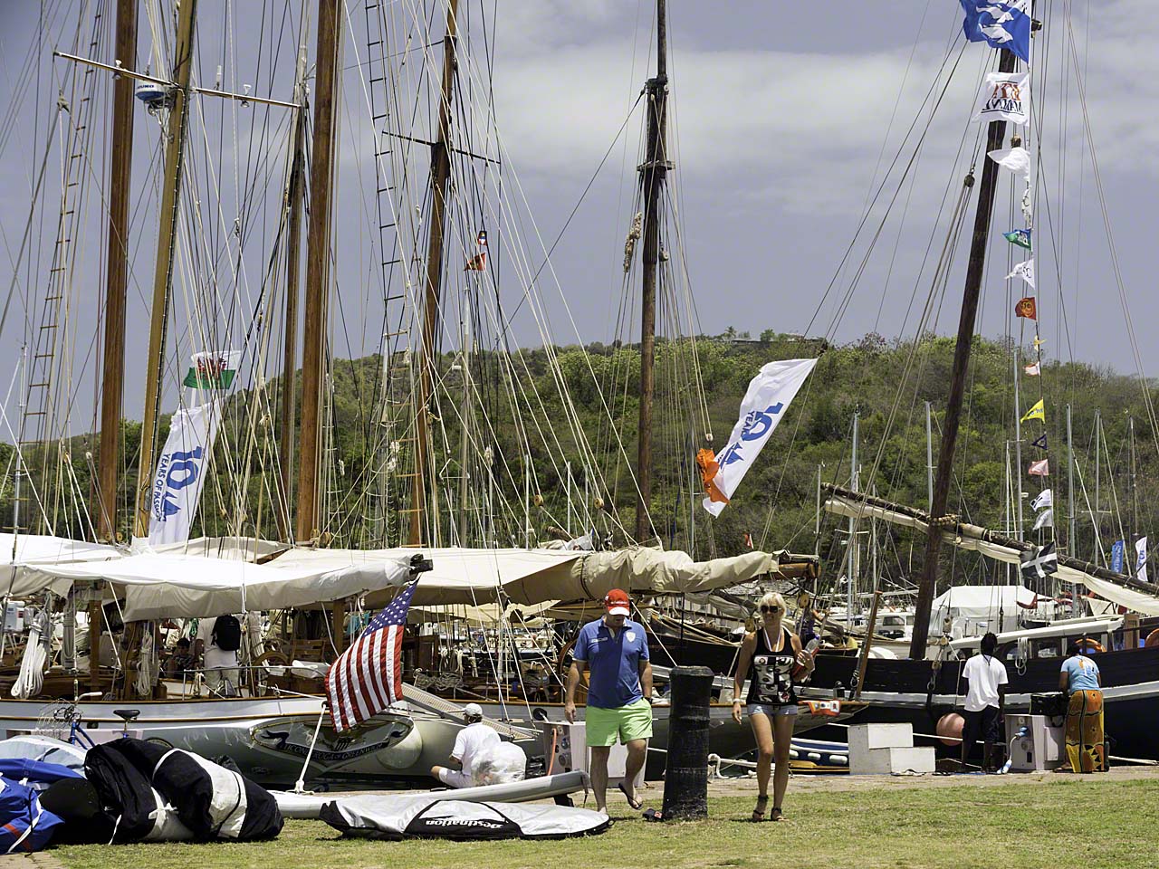 I noticed that one store was selling Aragorn’s artwork and talked with the proprietor (from the Dominican Republic) for a bit, then joined a group heading to Nelson’s Dockyard and looked at the fleet of classic yachts still at the docks. There are some very impressive new and old boat there, but the rigging is just too complicated for me. I can’t tell what many of the lines do, much less name them. Perhaps I will get a chance one day to sail and learn on a tall ship where I believe the first lessons are in line naming and one only graduates to interesting tasks once one knows each line.