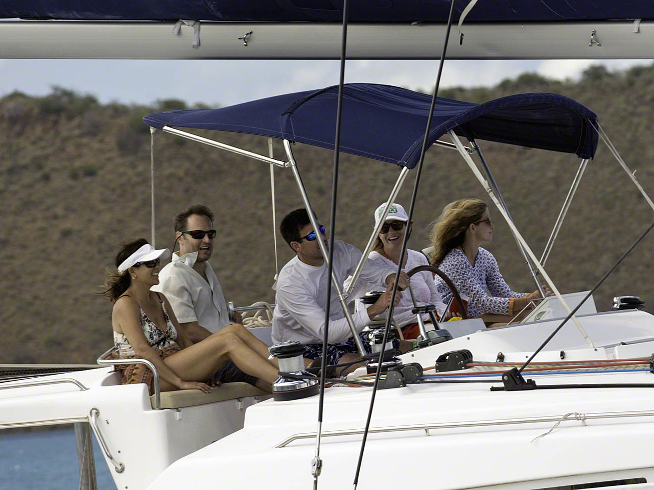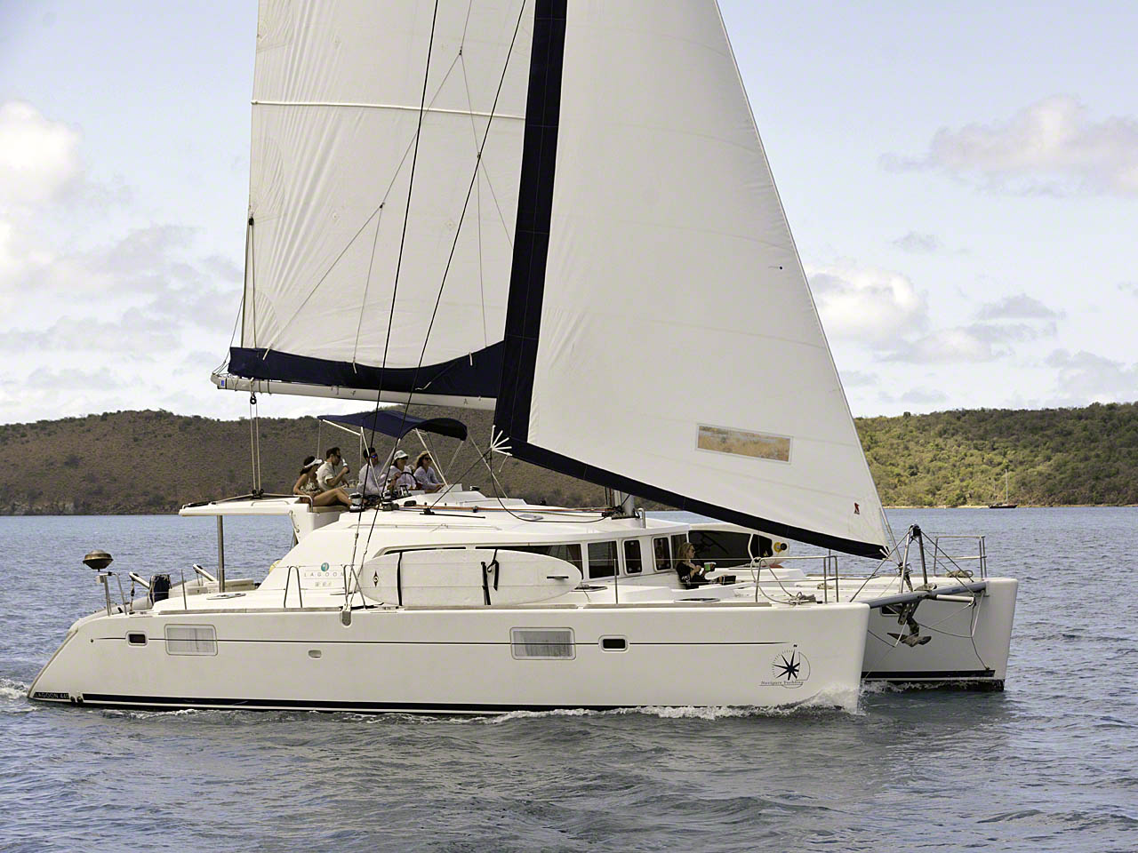 Coming into the narrow North Sound entrance in light winds I was just a few feet behind a new Lagoon 440 and we both sailed upwind in the Sound at about the same speed and angle. I had a reef in the mainsail but full (and ripped) genoa out and would have thought I could pull ahead. The winds stiffened and I suddenly made much better speed than they did and sailed almost all the way to my accustomed anchoring spot off Prickly Pear island.