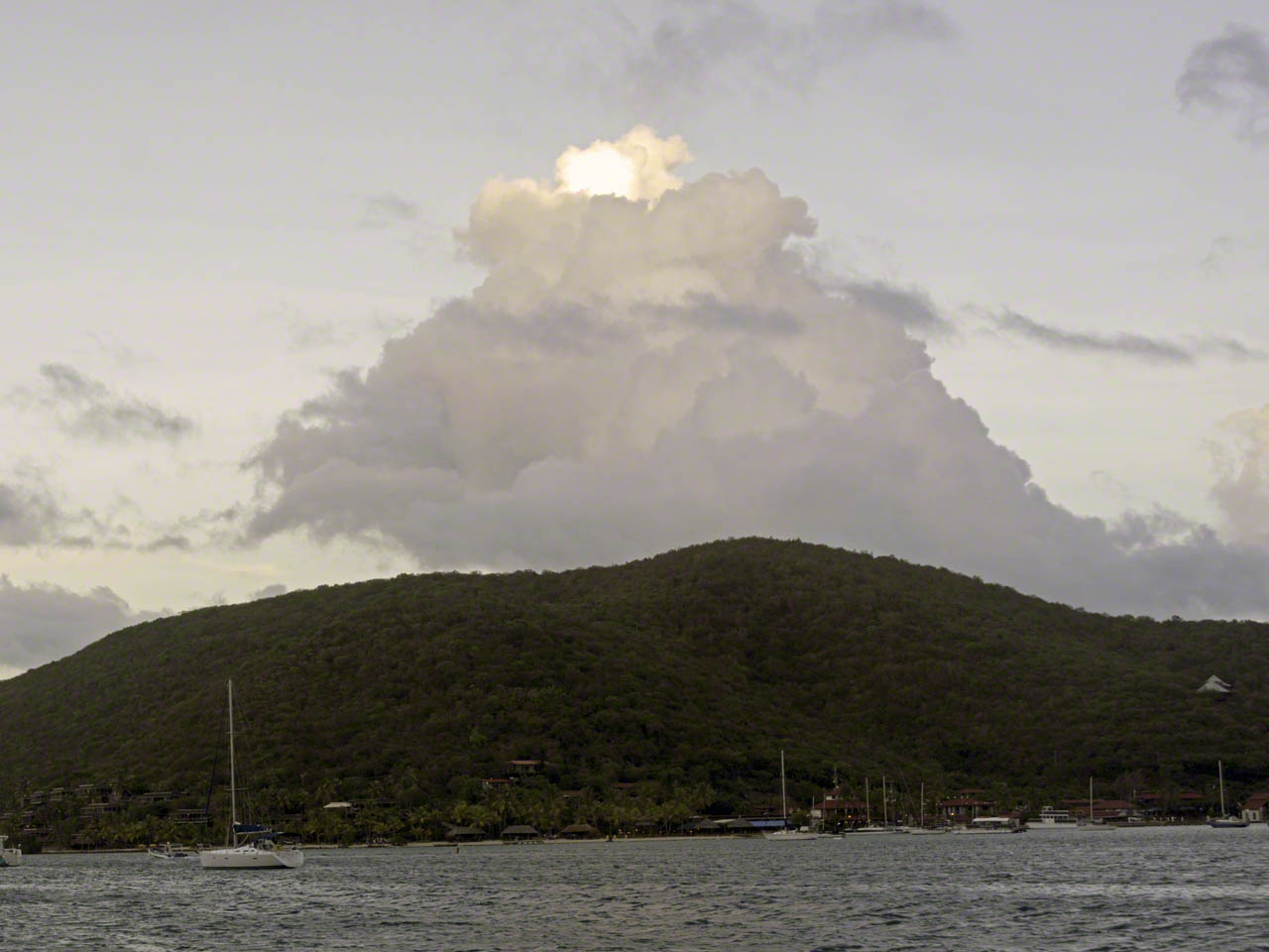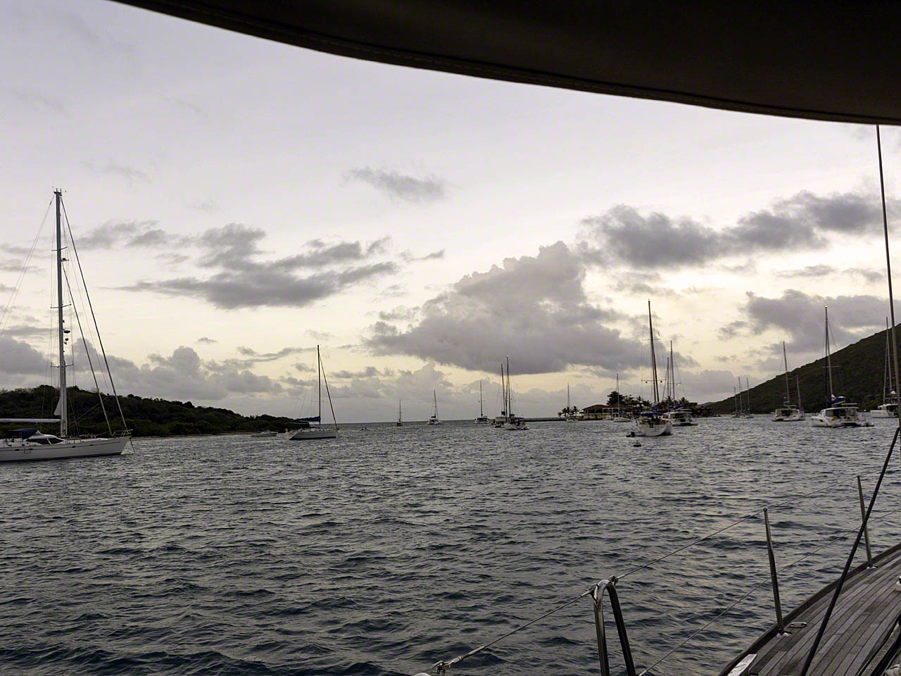 A long day at the office, so no fun activities or pictures. A pretty Oyster anchored upwind of me, but a lot closer to shore. I did make it to happy hour at Saba Rock again!