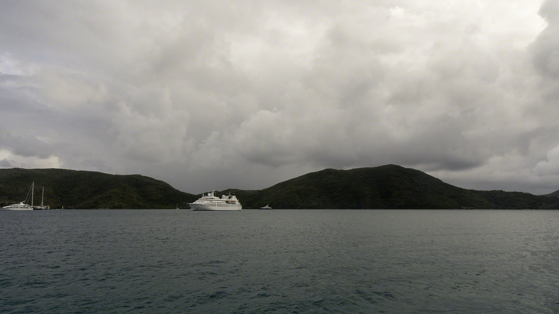 I awoke to wakes slamming into the back of the boat, the wind is still coming from approximately the same direction and is light, so I might have a better chance at finding my lost dive ladder than Michael did with his dinghy. The skies are overcast and promising a bit of rain. While drinking a breakfast coffee and checking my picture from the previous day the rains set in with a vengeance and I was soon on deck wearing just my swimming trunks and brushing the decks in the hopes of getting rid of much of the chain rust flakes. Although it is subtropical here, it does get a bit cold in the rain when there’s a touch of wind so I was happy to be back below decks to warm up. Of course now that I’m dry and below decks with the hatches shut it is now quite warm.