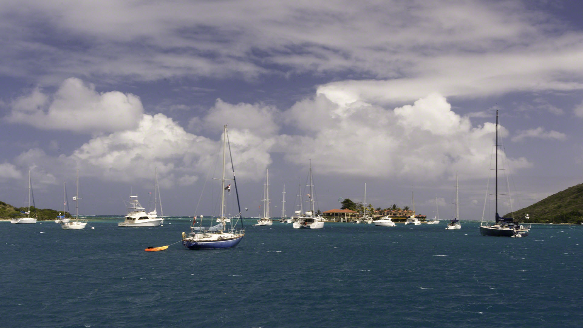 Gusty winds hit this morning and clouds are racing by overhead. I keep on opening and then closing the hatches due to occasional showers and am below decks much of the time. I did run the generator to recharge the batteries and used that excess energy to do the laundry, the dishes and even make the ugliest looking omelet ever made aboard this, or perhaps any, boat. It was tasty, though: semi-fresh mushrooms, chives, onions and some cheese. The gusts seem to be ebbing now, and no boats in the anchorage dragged. Only two more days before this system passes through and I get my 24-hour weather window to bash upwind to St. Martin.