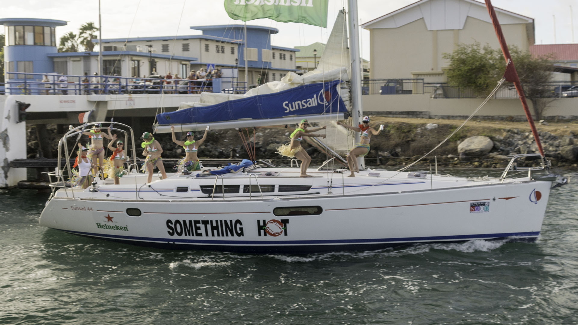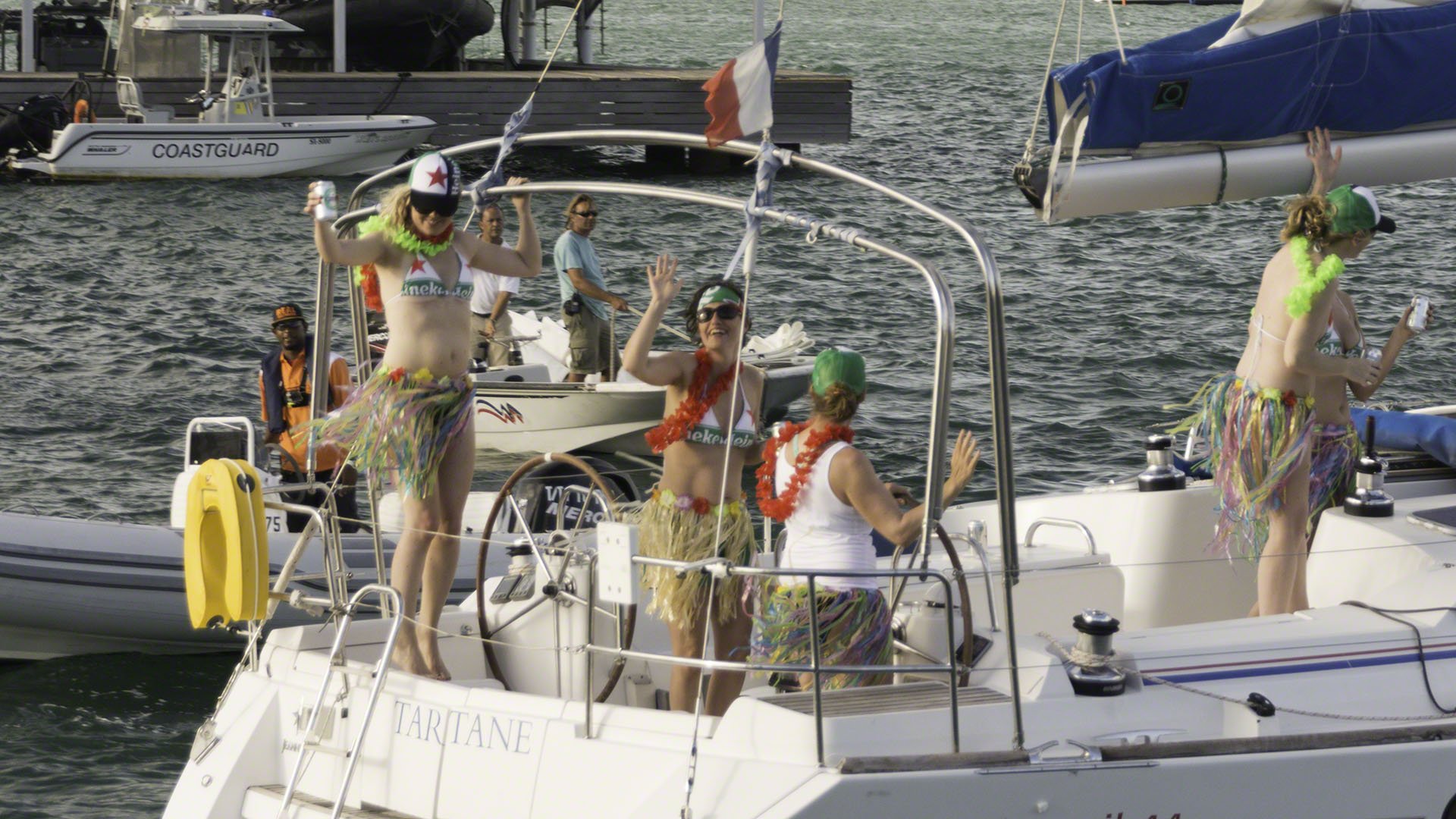 After pulling up the finish marker and returning to our mooring close to the Simpson Bay bridge we could finally pop open our cans of sponsor’s malty beverage and toast ourselves on a job well done. Once we put the boat away we repaired to the SMYC bar, and I vaguely remember talking to several people and the bridge opening and closing several times – I am not very good at drinking during the daytime and by the time I was back aboard and could practice at what I am good at (drinking during the nighttime) I was sated and ended up making a light dinner in the galley and calling it a very early evening indeed.