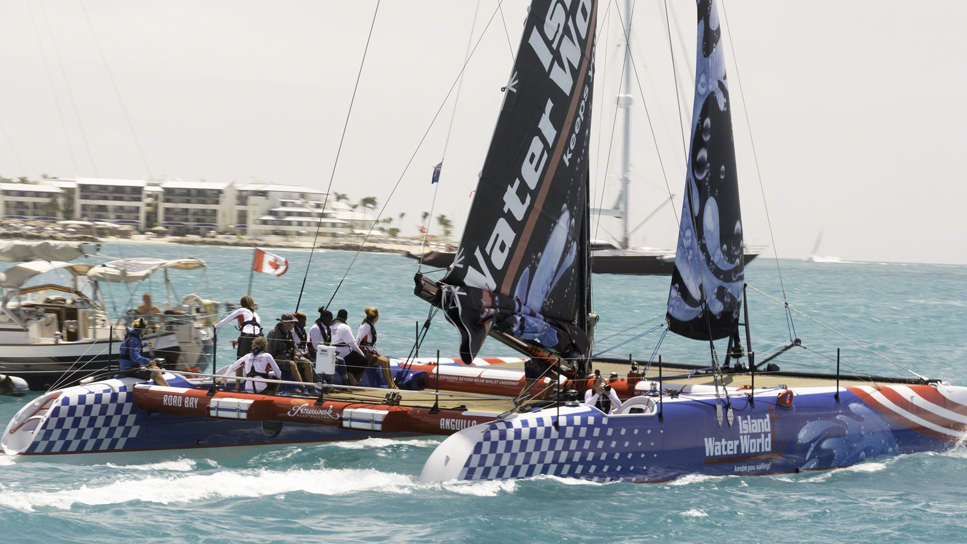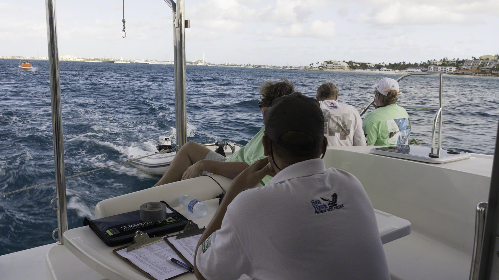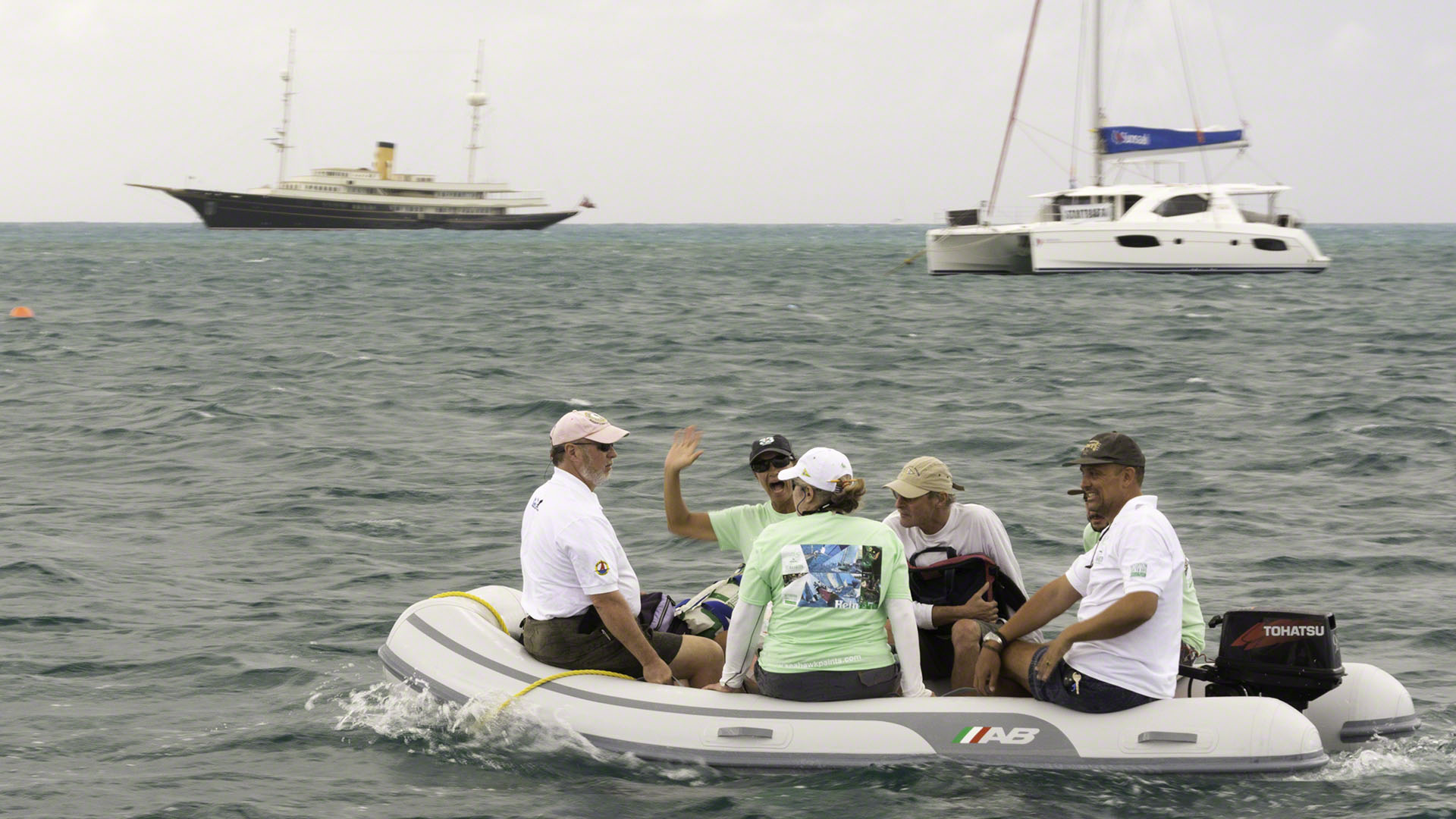 The main Heineken Regatta event began today, with winds still in the high 20’s and a significant swell at sea the conditions will make for some spirited sailing for all of the classes. Sunsail had required that at least one reef be put in the mainsails and the contestants that we started adhered to that, although in one class on the other start boat they skippers had agreed that they wouldn’t fly any spinnakers that day but once they went on their downwind runs we saw the chutes pop out after all.