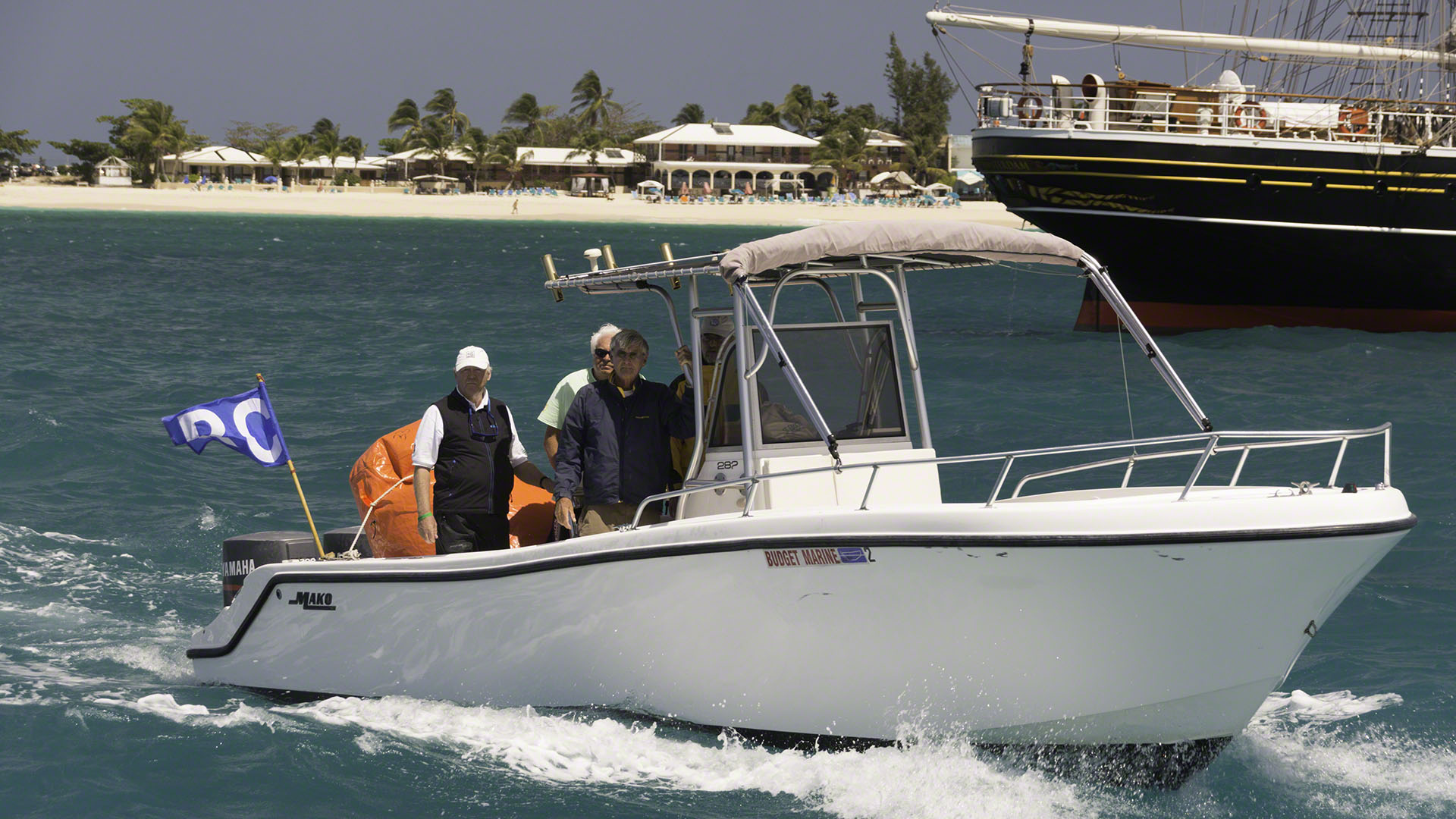 During set up we had some issues with the horn system that Paul Miller had set up for us. He used a simple relay to keep the high current used to blow the horn from the very long line leading to the button, but during dismantling of the horn the day before one of us had pulled all the plugs off the relay rather than just the battery and horn connectors. We sat down with a multimeter to re-connect it but I couldn’t see a way to do this (it turns out that a pigtail connector was in the hidden) so we called Paul and he had a backup unit shipped out to us. The first boat with “RC” that approached us didn’t use the fenders that we’d put out and threw something in a bag that got caught by the wind and went into the water. Mark quickly got his dinghy going and picked it up – but it ended up being two (waterlogged and very recently expired) cell phones. Leo was not happy at losing his cherished push-button phone! We still cannot understand why that boat didn’t just come alongside to the fenders we had set up and merely handed over the item. Several minutes later a large water taxi service tender came up and used that system to successfully hand over the new relay assembly for the horn. Although we put it together in a hurry and tested it, the day’s starts were done with a backup handheld horn for some reason.