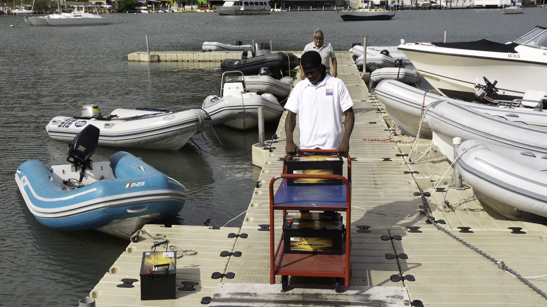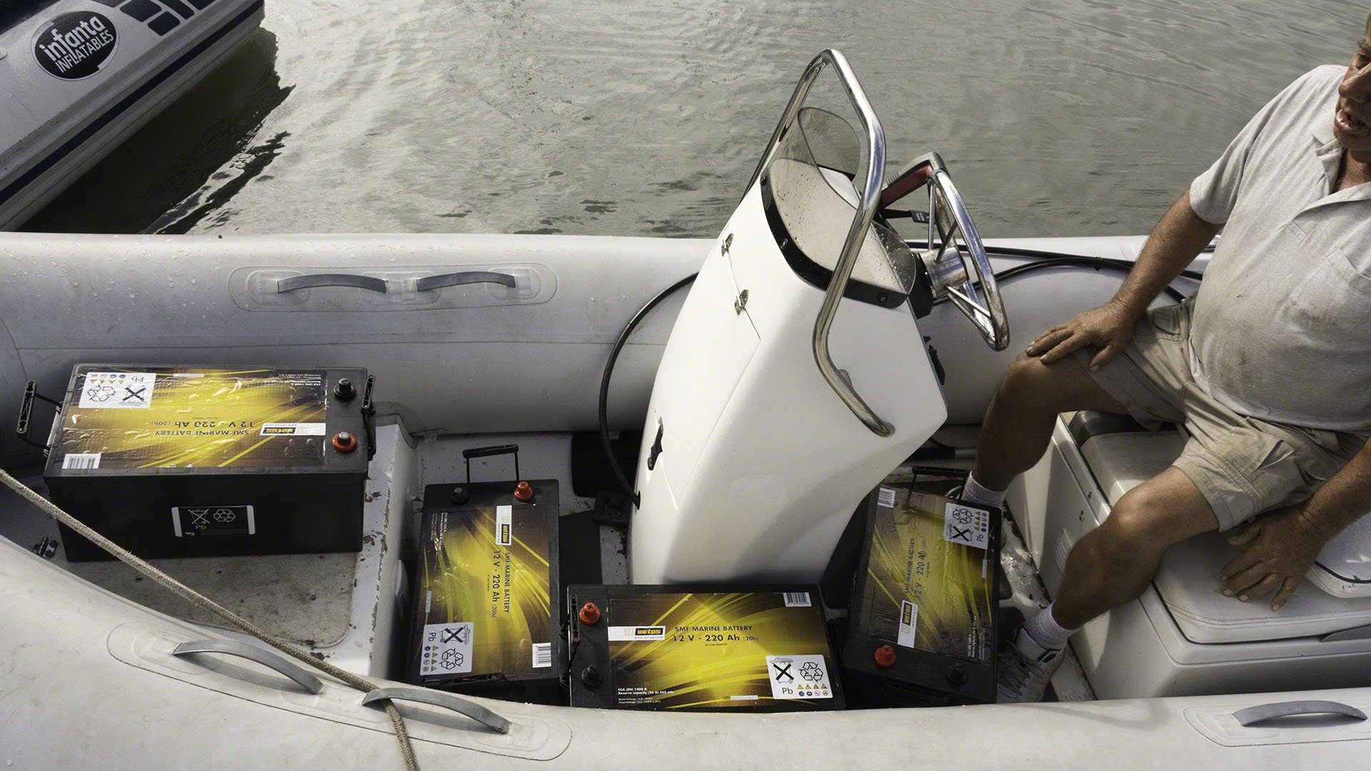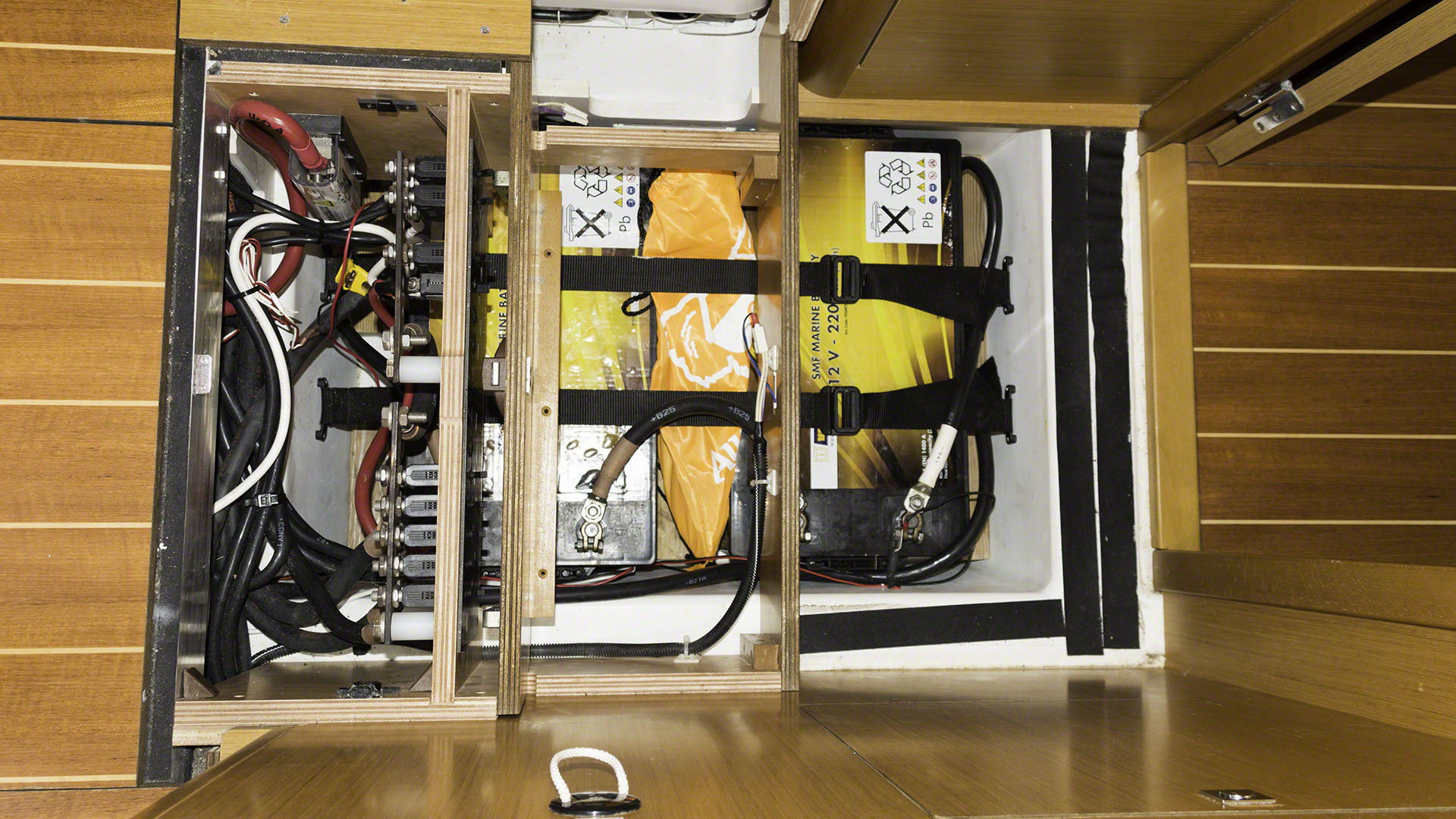 The day is only half over, but I’m absolutely beat. Andy from Five Star Yachting and I did the battery replacement on Zanshin. The dead battery bank consisted of 8 120Ah Exide/Sonnenschein batteries, the killed batteries have been removed and replaced with 4 220Ah Vetus batteries. The old ones were AGM while the new ones are sealed maintenance-free ones (but not AGM ones) but with the solar panels aboard I can sacrifice a bit of charging capacity and end up paying significantly less. We picked up the new batteries at Budget Marine in the morning and then spent some quality time lifting lead around. The 8D type new batteries are very heavy indeed, and the old ones got heavier during the time I had to move them around. Luckily both Andy’s and my backs stayed in place during all this shifting about. The new batteries are now safely installed in the two banks and I am running the generator right now to give them their first charge to 100%. The generator has been running an hour or so and pumping 80A into the 24V bank, the bulk load is now finished and the charge is in absorption mode but still charging with 50A, so I think I still have a bit of generator time left before the bank is fully charged and my Xantrex battery monitor can synchronize. I’ve now started up the washing machine to keep the generator under some load and unfortunately the electric part of the water heater trips the circuit breaker, which means I need to head off to the French side home supply store to get the heating element (which I hope is standardized).