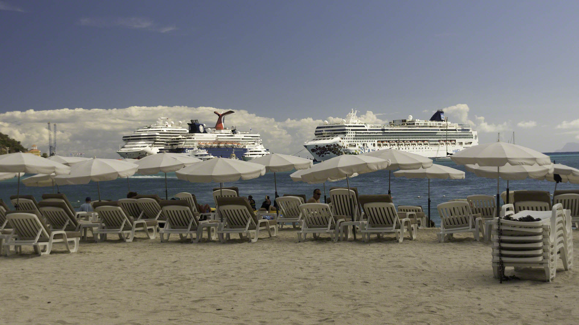 I brought my bimini to the sail maker’s at 8:00 in the morning in the hopes that being early could get me brought to the front of the line, but the work floor was already full of sails being repaired and they weren’t sanguine about my chances of getting my work done that day. Despite that I remain optimistic about getting out of the lagoon in the next day or two. I returned to the boat to finish the last wiring when Mark asked if I could look at his recently comatose computer; it had stopped booting the day before and none of the normal lights was on. We took the notebook apart and made sure that the power supply was functioning and I tried to trace the power problem, with no luck. I pronounced it deceased, but Mark wanted a second opinion and later took it into a computer repair shop ashore. But between those times we took a bus into Phillipsburg and went shopping, starting with Blue Point and ending up at a couple of stores on Front Street and comparing notebooks and prices. I used that time to also check out the camera lenses on offer and was sorely tempted by the Nikon Fish-eye lens, which I will probably purchase next time I’m in town.