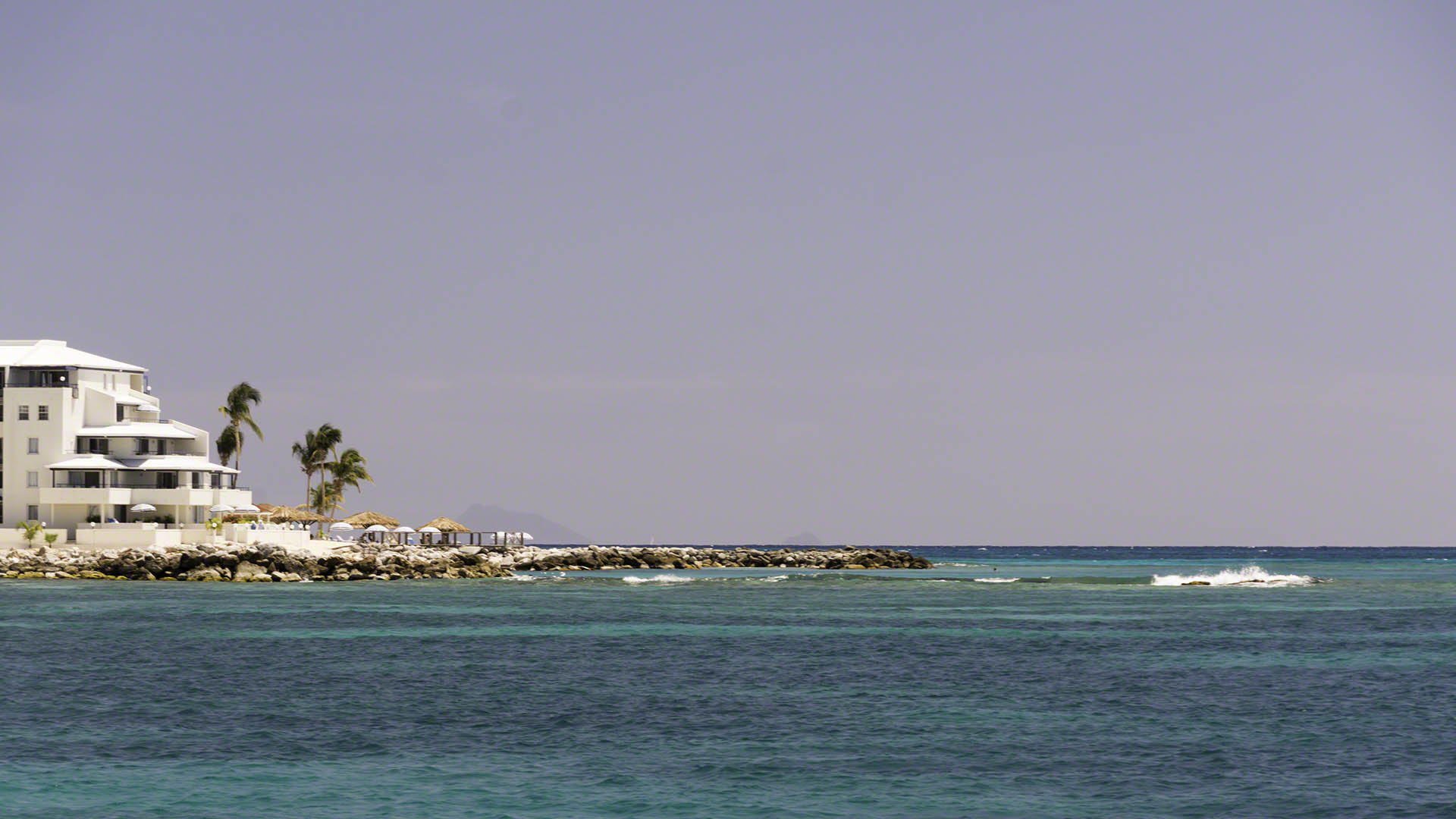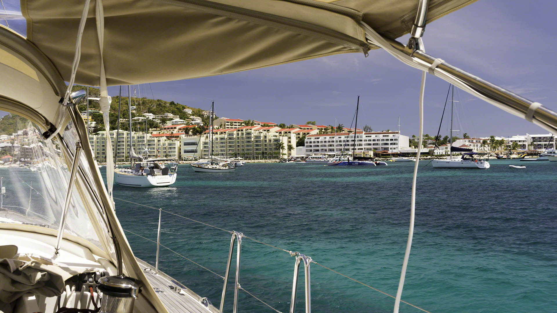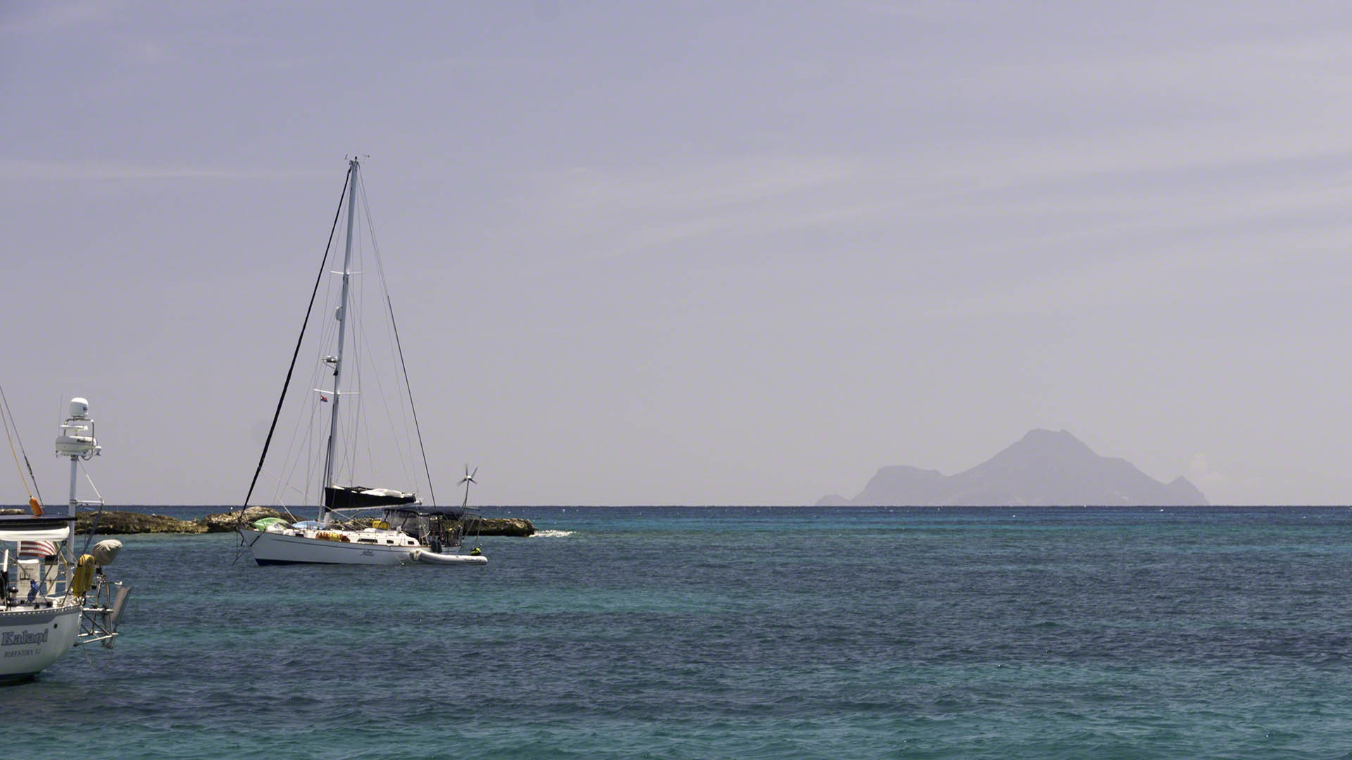 After the obligatory morning network and my breakfast, I cleaned up a bit and decided to escape the confines of the lagoon with the 10:30 bridge. I weighed anchor and entered the channel behind a small U.S. flagged vessel and a big day sail catamaran was behind me. The small boat slowed down and stopped around the entrance to the Palapa dinghy dock and there wasn’t too much room to pass them. The bridge operator called them several times on the VHF, asking them at first politely and later on a bit more stridently to close up with rest of the pack and not remain so far behind. I shouted across to them if they were listening on the VHF and despite them saying “Yes” and my repeating the bridge operators request they just stated that there were still 5 minutes to go and wouldn’t move. The big catamaran behind me expressed his emotions better than I did by lifting both his hands up over his head and shaking his head. Then, when the bridge finally opened, the boat got in line and suddenly veered right before the bridge and did a 180° turn because a dinghy had crossed it’s intended path. What a messed up bridge opening. At least I found a spot in 15 feet of water to anchor off Kim Sha beach and am now rolling around a bit in the swell, to which I’m no longer accustomed after the long stay in the sheltered waters inside the lagoon.