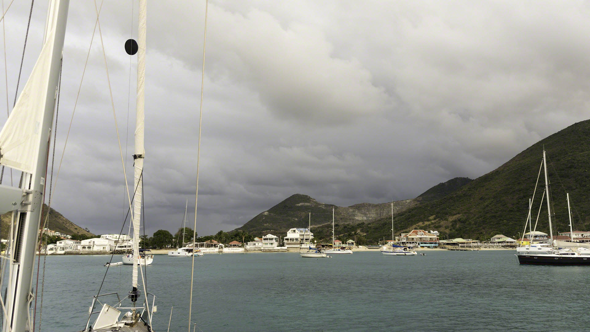 I’ve finally made it not only out of the confines of the Simpson Bay Lagoon, but have managed to leave the country, as well. I cleared out of Dutch Sint Maarten in the morning, then dinghied across the length of the lagoon to the French side and to the new Capitainerie offices at Marina Port Royal. There I cleared into the French side and this process was made so much easier since they now had English “QWERTY” keyboards rather than the French “AZERTY” ones! Clearing out of the Dutch side cost quite a bit of money, since they charge $40 per week for my boat and I’d been there far too long, the French just wanted €6. Once back aboard Zanshin I saw no reason to hang around and sailed to Grand Case. The winds by the airport were very light, and at times I thought about running the engine, but once around the corner I had to reef sails and made several tacks up the channel in order to reach Grand Case. I’m anchored here now, with 4 feet of water under the keel and I can see the action on the shoreline; but have decided to stay aboard this evening rather than hit the town.