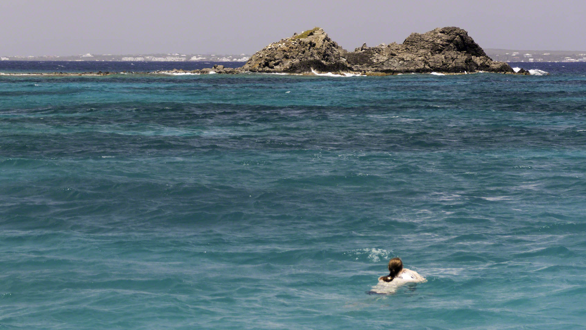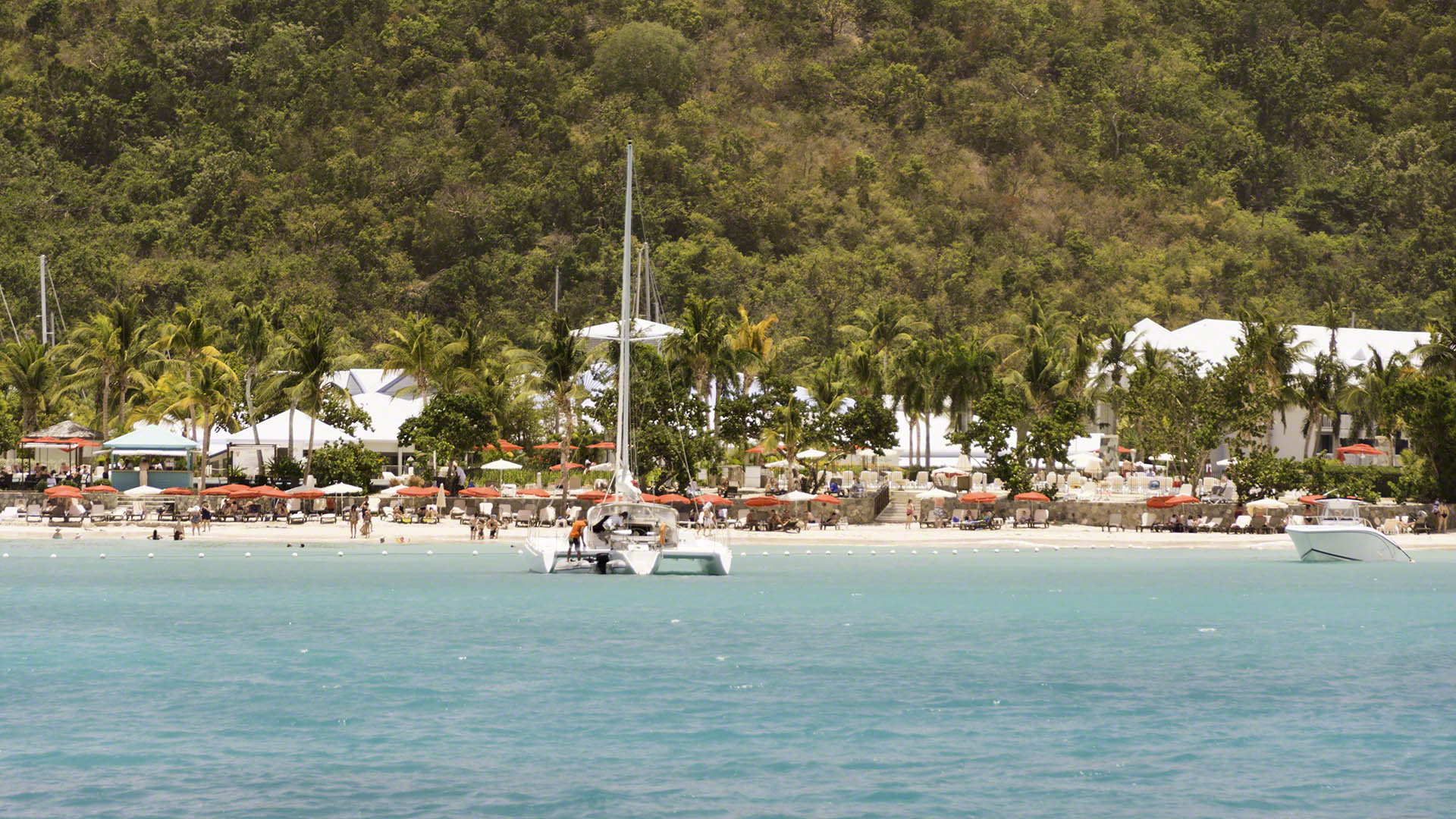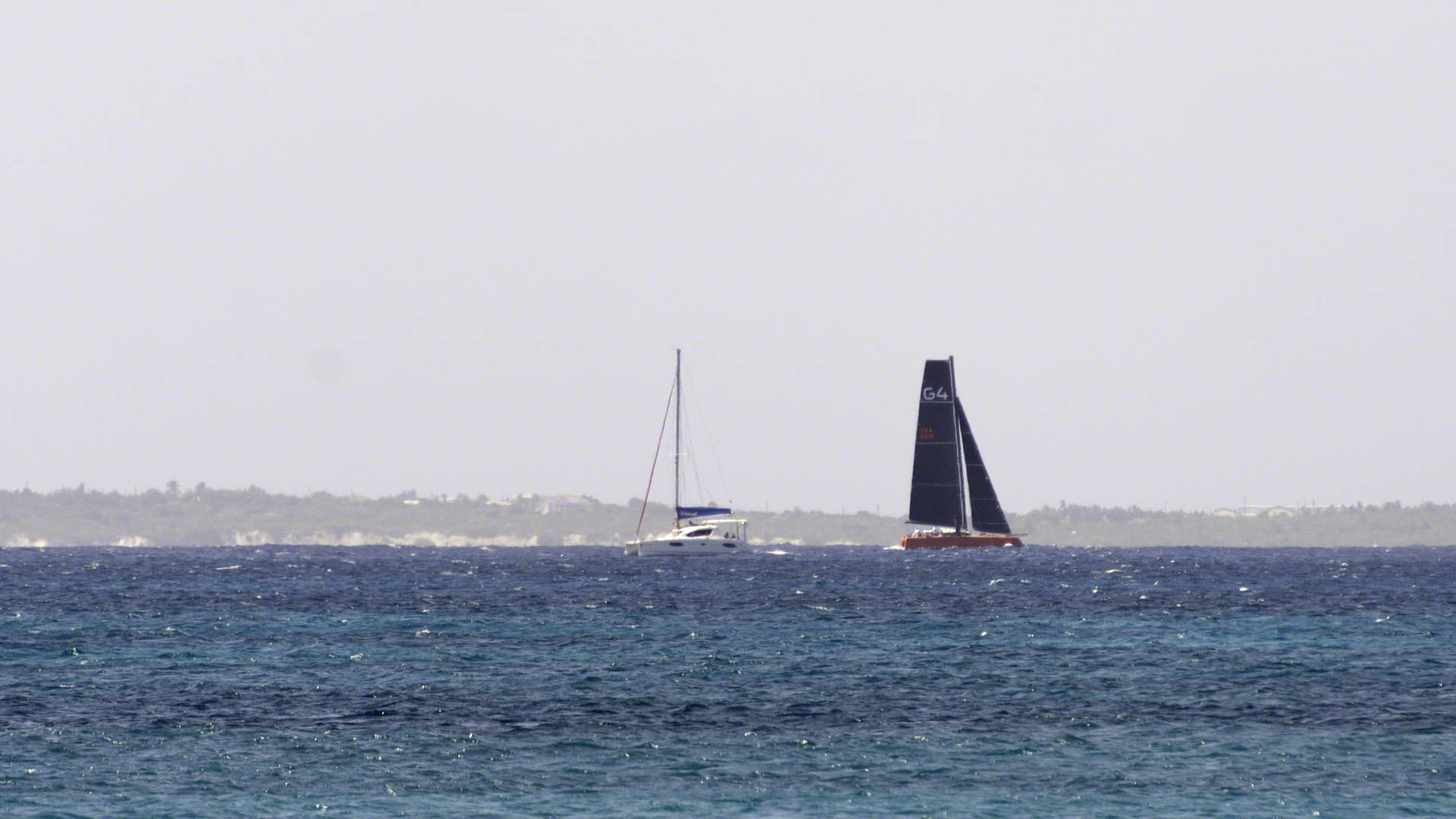 All 4 of my friends came aboard afterward for the day and we motored up to Anse Marcel right around the corner and anchored off the beach. Unfortunately the waves were wrapping around the headland and Zanshin had an occasional but very pronounced rolling motion and after a short swim, where Alyssa spent time waiting in vain for a turtle to resurface, we weighed anchor and headed back towards Anse de Pères since that had turned out to be a very calm anchorage well suited for visiting sailors. The beach was as crowded as on the previous day, but luckily the battle of the loudspeakers from ashore had been fought and the survivor was playing at a more moderate volume.