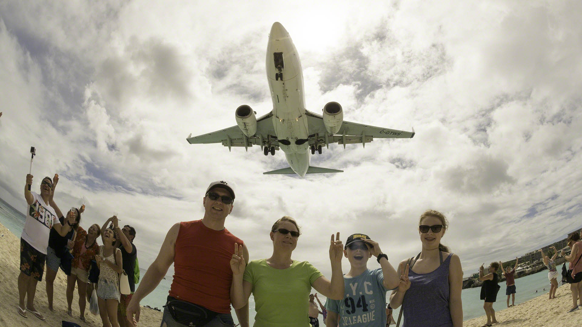 We departed on our rental steed in a great hurry in order to catch Air France landing but didn’t quite make it in time, seeing the approach on long final while still approaching the terminal building. Nonetheless we hit the beach and watched several large flights arrive right over us. Sascha got to hang on to the fence while a Delta airlines Boeing took off and I didn’t get much of that on video because I was being sandblasted by kerosene-laden gases.