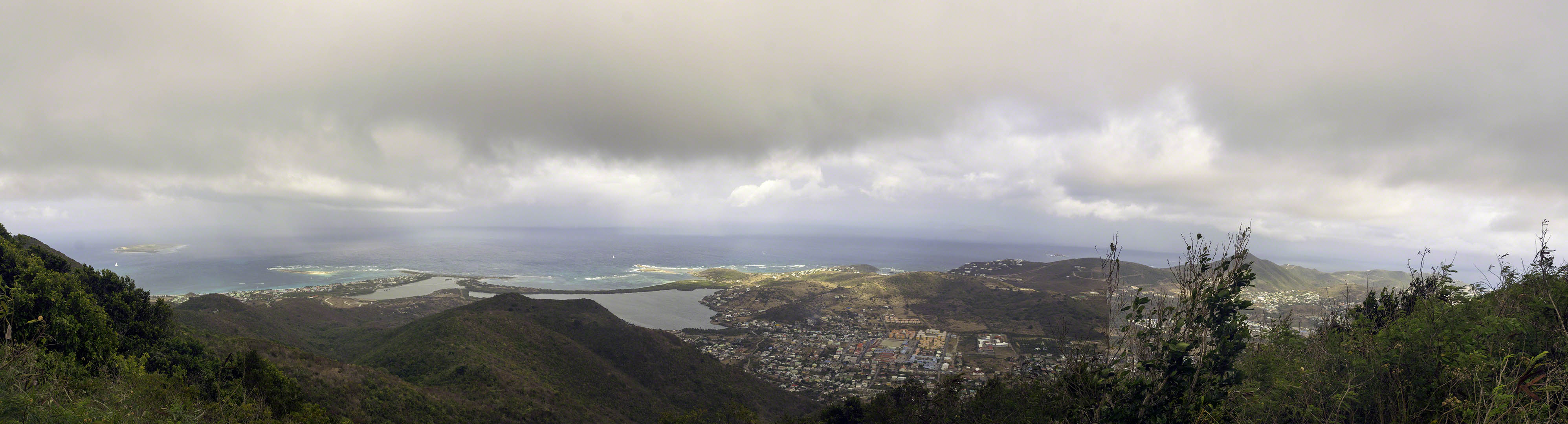 After the airport experience we were fortunate enough to be the first car in line at the Causeway Bridge for an opening and subsequently we took the very long drive uphill to Pic Paradis, St. Martin’s highest peak at 424m for the view, which was a bit hazy due to low cloud and subsequently rain (which only started after we’d returned to the car). Once again our attempts at catching Air France in action were thwarted by my bad timing, we missed the departure by 30 minutes. After experiencing an island traffic jam we headed to Buccaneer’s for some pizza dinner while looking at the sunset, but a rain shower prompted us to move to cover for the day’s finale.