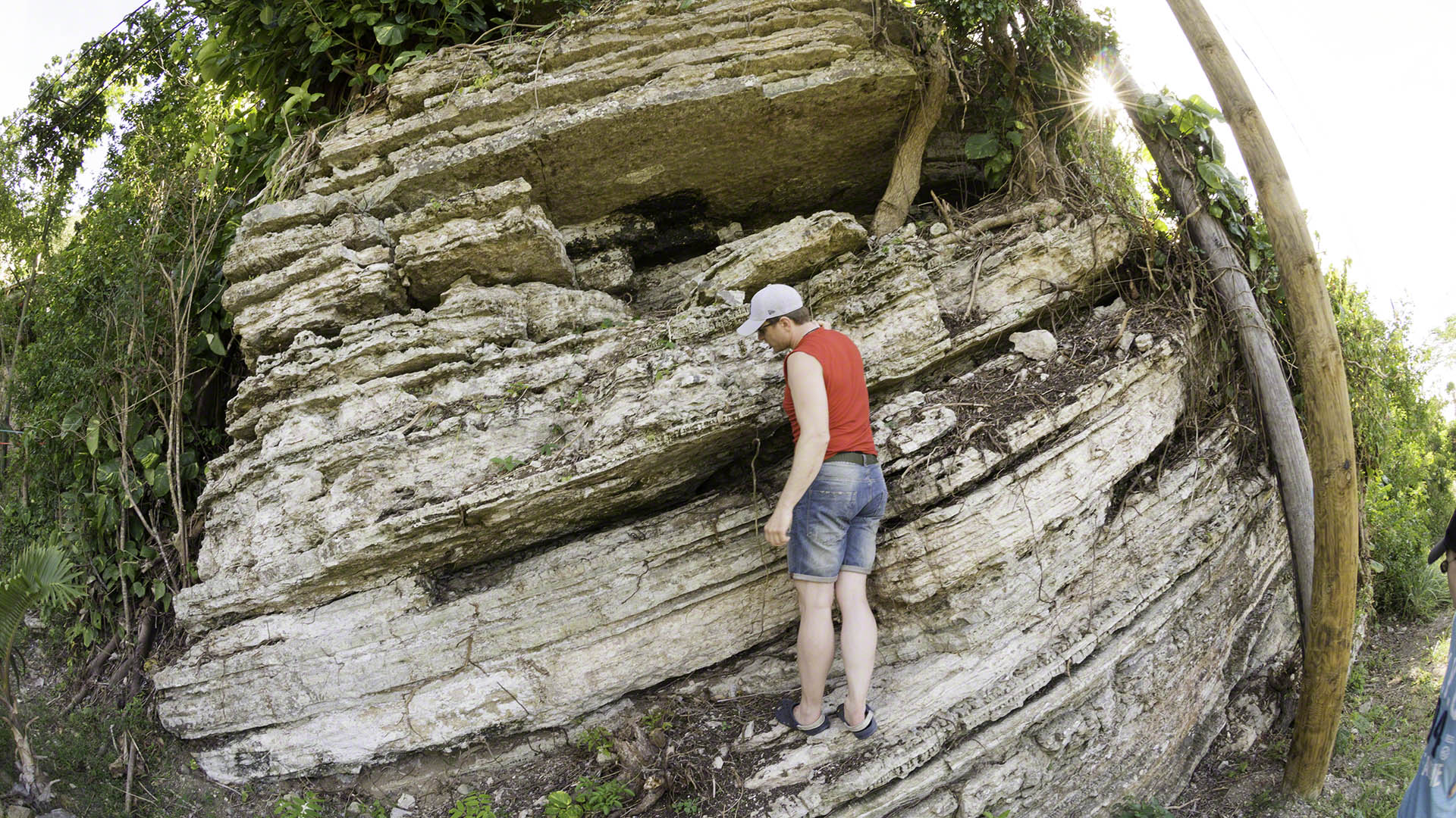During the course of the slow morning, after I’d spoken to my friends who wanted to postpone our tour until the early afternoon, I had a visit from Jeffrey aboard the “S/Y Mad Romance” anchored upwind to my starboard side who was the first to inform of the events that had transpired the day before while I was playing tourist with my friends. It seems that a Moorings charter catamaran by the name of Mille Eaux had anchored, or attempted to anchor, upwind and their windlass breaker had popped at a most inopportune time with the anchor still out but no longer set. They had dragged past “S/Y Mad Romance” on a collision course with poor Zanshin, who was empty and anchored and unable to flee (n.b. I had a black-ball day shape hoisted so there could be no confusion). They then managed to entangle the painter and stall an engine, then pick up my anchor chain with theirs before making contact with Zanshin. Jeffrey had interposed his dinghy and ameliorated most of the damage, but my pulpit is now a bit bent (although still operable) and some chunks are taken out of my rub rail. That catamaran was still there last night and departed this morning without coming by or otherwise contacting me.