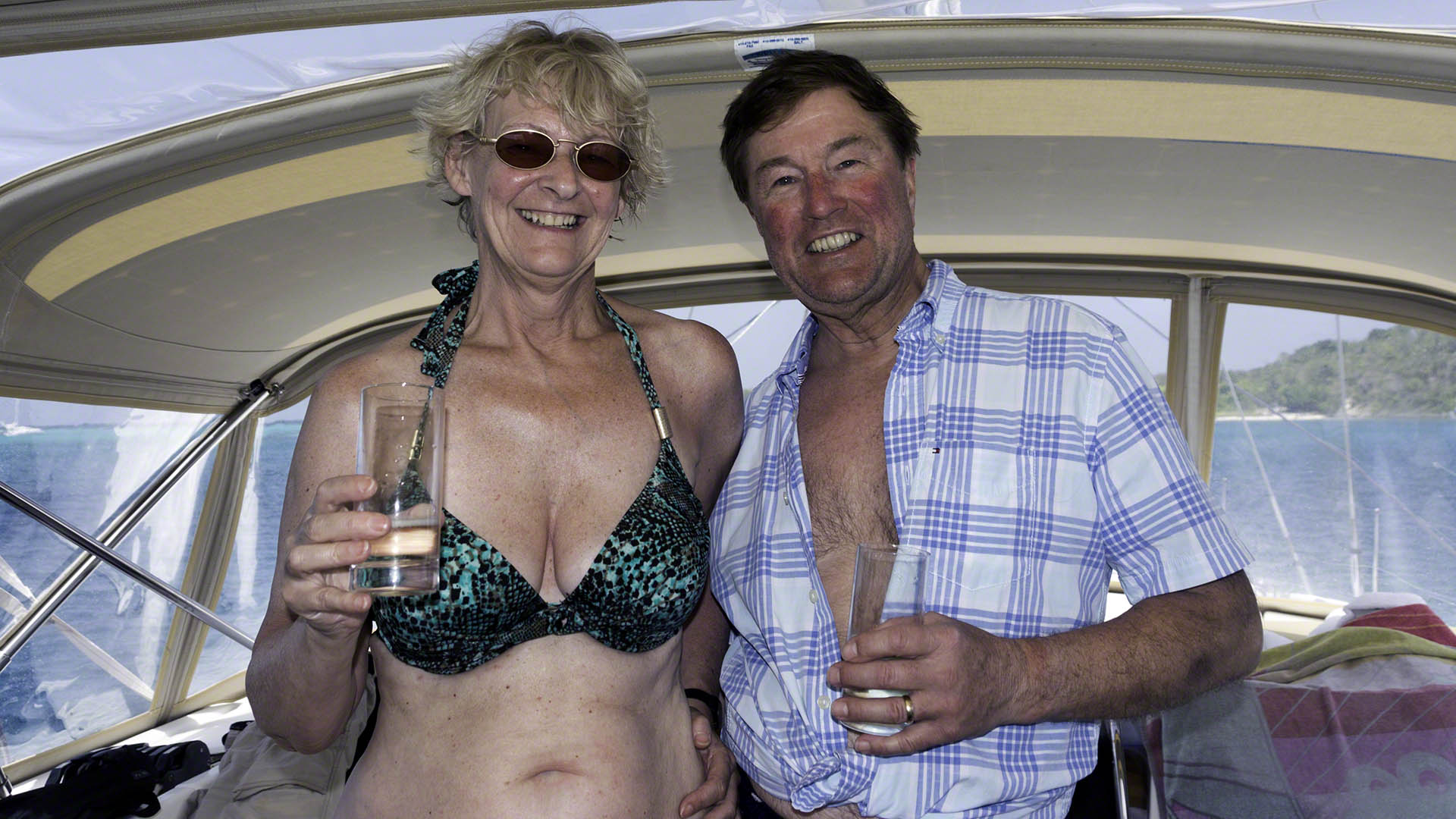 Today is “Lay Day”! That means a break from the rigors of working on the committee boat and this will mark the 3rd annual Lay-Day-Trip. That means that we take Zanshin out for the day and head to some anchorage in order to grill things on the barbie and partake of the odd alcoholic beverage or two. The normal cast consists of myself, Angela and Steve; this year Ginny and Graham joined us, as did Egil (a repeat guest) accompanied by another sister. We headed out to a mooring at Green Island and had a great time motor sailing there, imbibing some alcohol, consuming grilled delicacies, then sailing back at dusk.