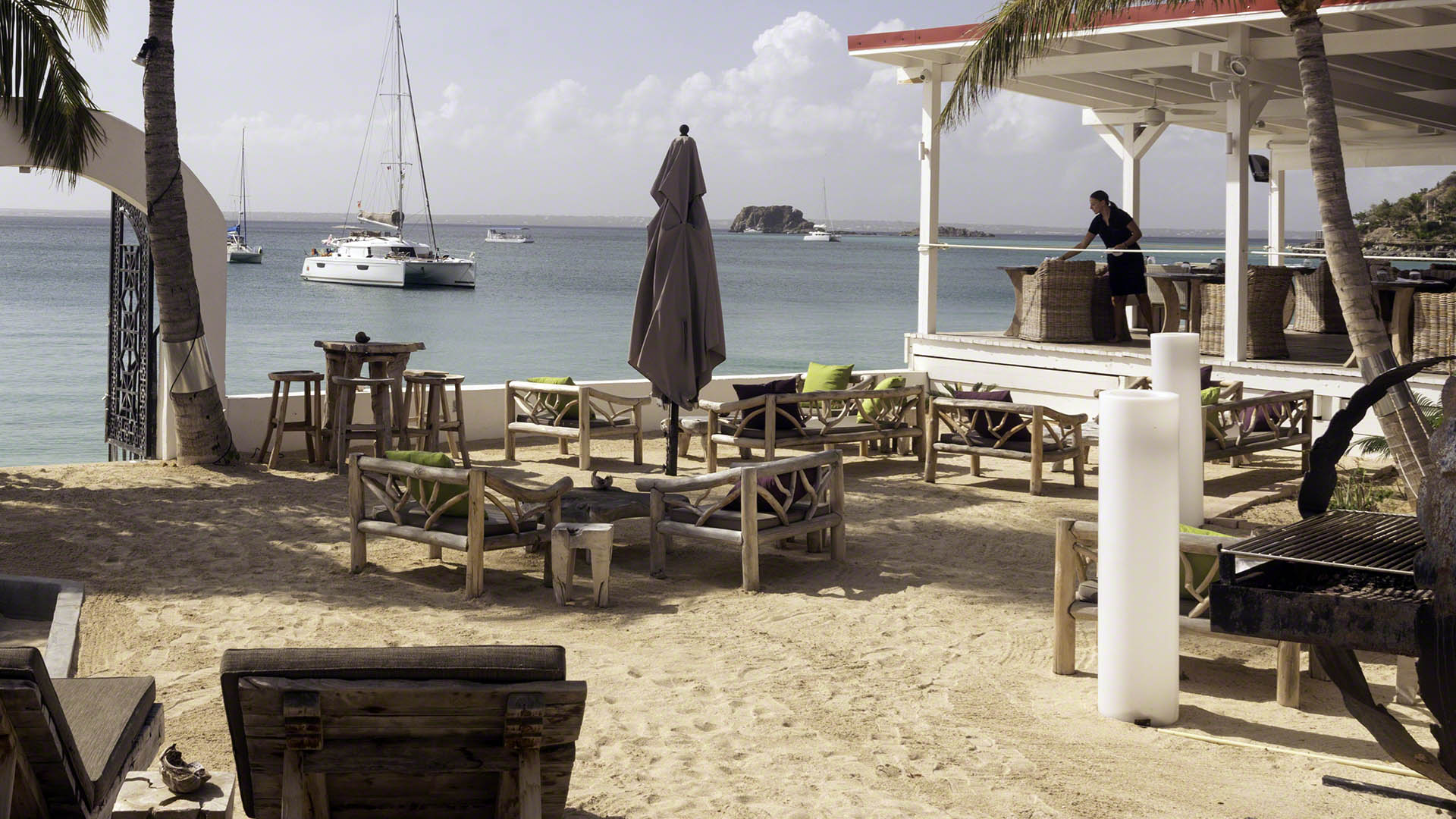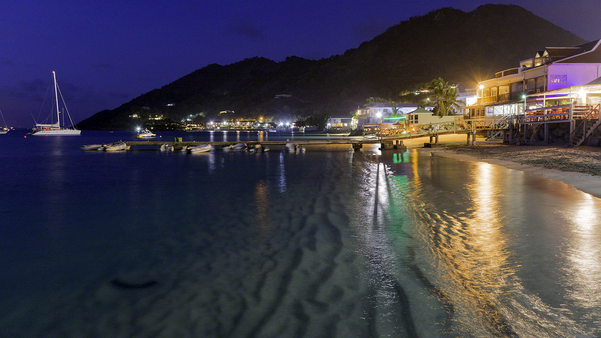 I needed to clear into St. Martin and didn’t want to go to Marigot, so I was going to try Anse Marcel. It was just a bit too far for the dinghy, so I took the mother ship around the corner and anchored off the beach, taking the dinghy in through the narrow channel. As I was tying up at the Capitainerie the dock master came out and we spoke for a little bit and he informed me that I couldn’t clear in from St. Barths despite my having cleared out of there; both islands are France and he said it was not necessary – although I felt odd about, he is in a position to know so I returned to Zanshin and then went back around Creole Rock into Grand Case and anchored there. My depth sounder read 3 feet and I dove on the boat, seeing that this was in actually over 6 feet of water under the keel (I did this by standing underneath the keel and raising my hand up to guesstimate the clearance. I then adjusted the depth sounder, which took me a while because I found the user interface a bit confusing and I kept on getting very strange readings. It turns out that the settings are mutually exclusive and when I changed one value the others were zeroed out. In the end I got the system adjusted to my satisfaction.