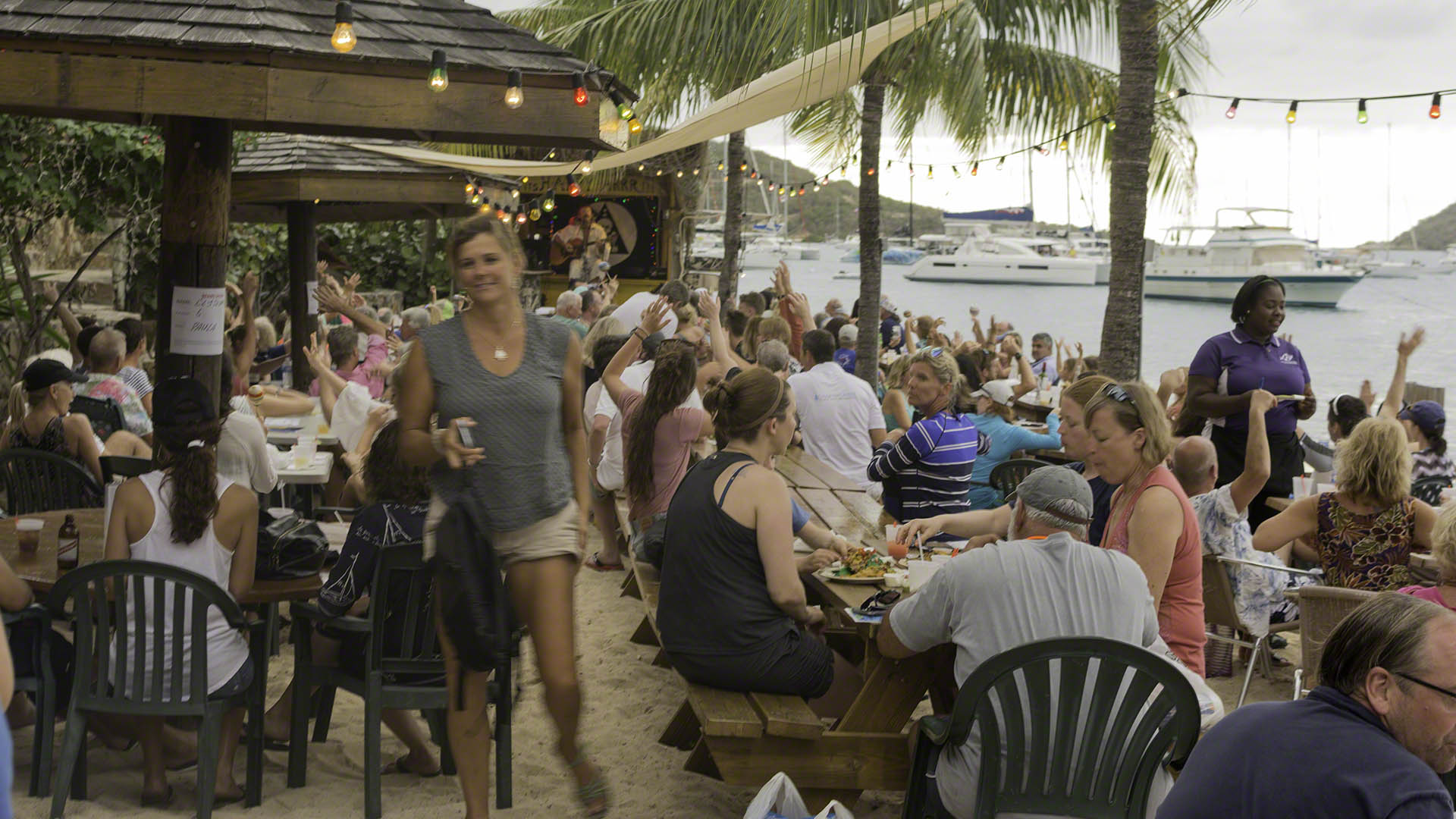 Malcolm and I had a leisurely morning, doing a good amount of damage to my supplies of Espresso and foamed milk. We then motored to the Bitter End and took a mooring, going ashore to say hello to our fellow Jeanneau sailors and arranging for me to join the test sail planned in the early afternoon. We had a tasty lunch at The Fat Virgin Café and I returned to the docks to get aboard the Jeanneau 64 while Malcolm repaired to the bar.