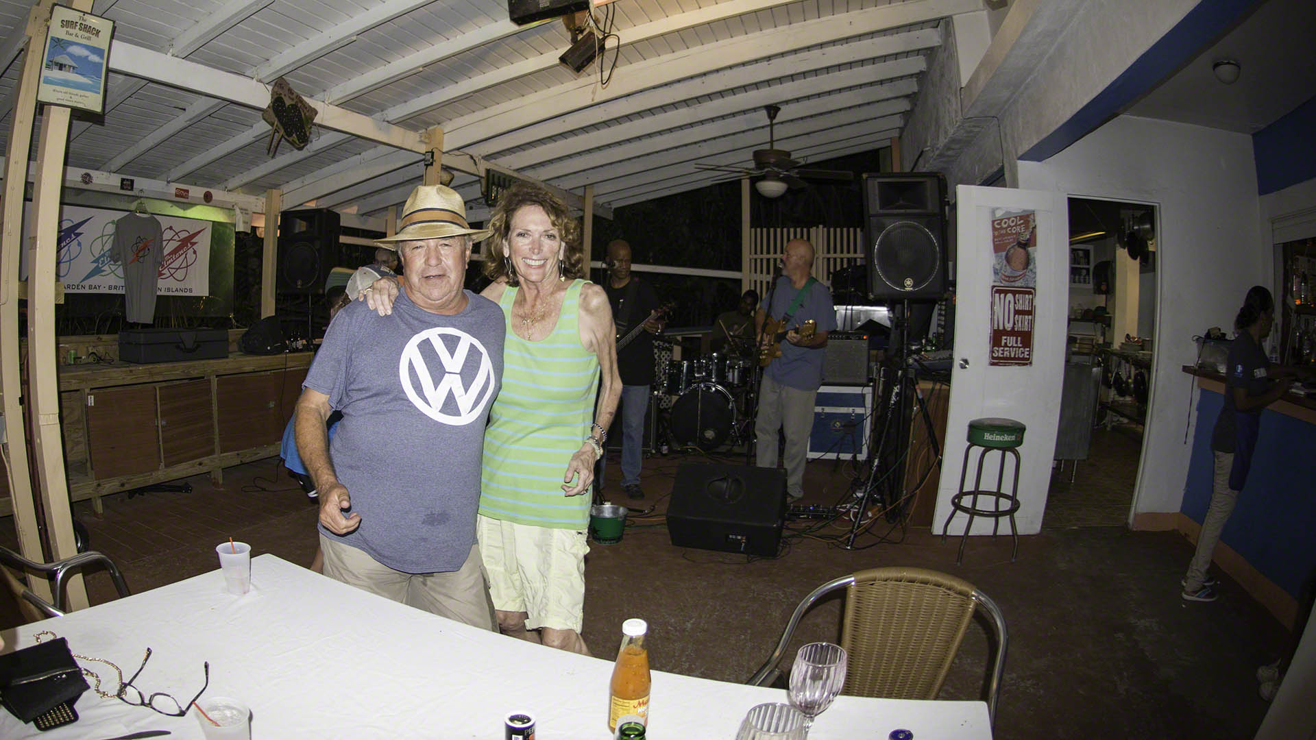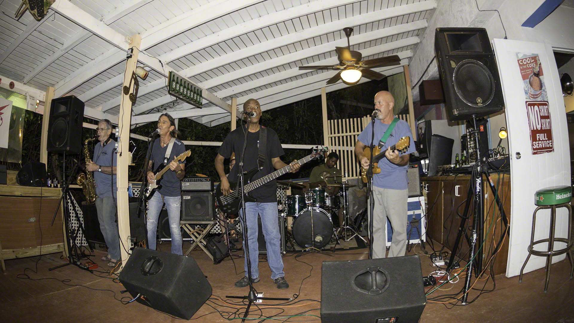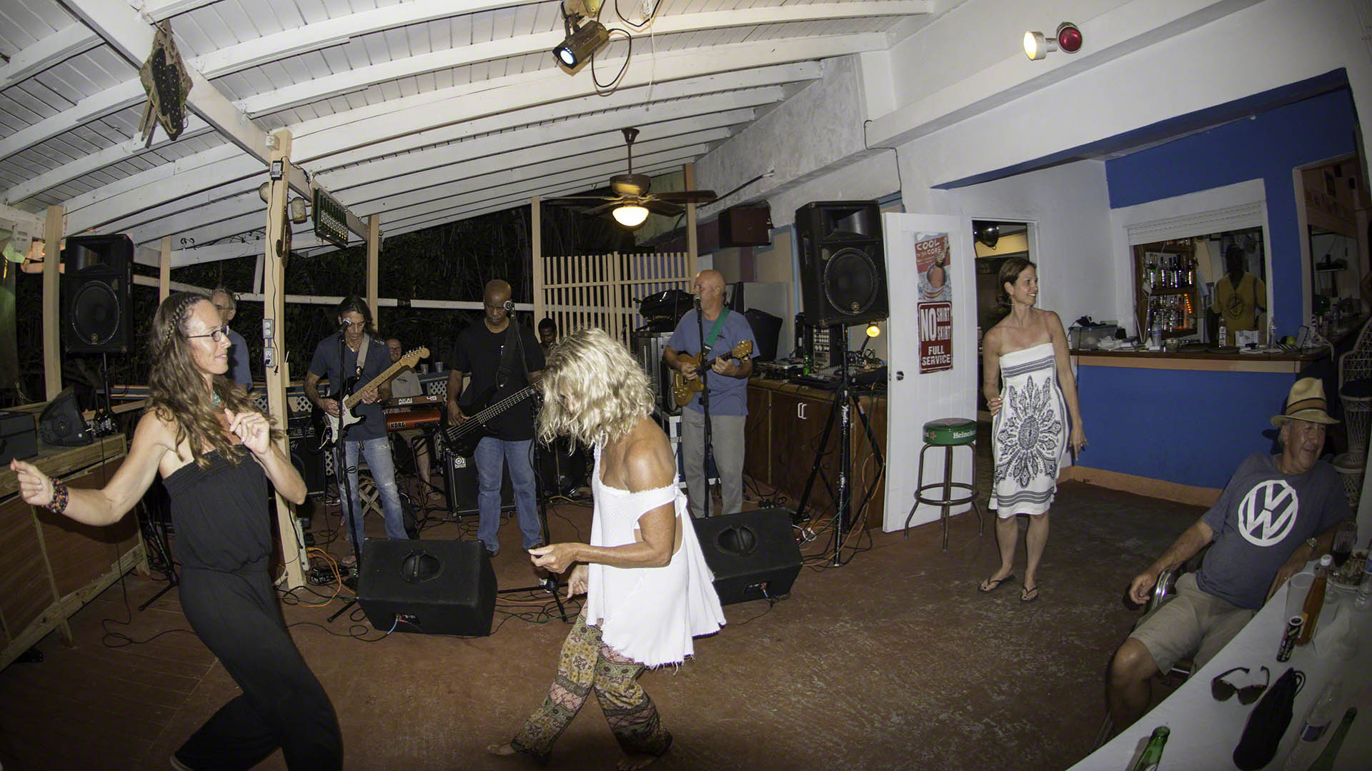 The Elmtones play at the Elm in Cane Garden Bay on Fridays and Sundays and since the north swell had finally subsided I hopped across to Cane Garden Bay and anchored quite close in to the beach. The winds were calm and I used the paddleboard to get some exercise and then met Candace, Malcolm, Island Jim and others at their reserved table right by the band for a great gig. The full band, all 6 of them, were present tonight and their playlist was an excellent one. Although the crowd asked them to do āFree Birdā so loudly and persistently that they actually did a Reggae rendition of it (and mercifully cut the song short…).