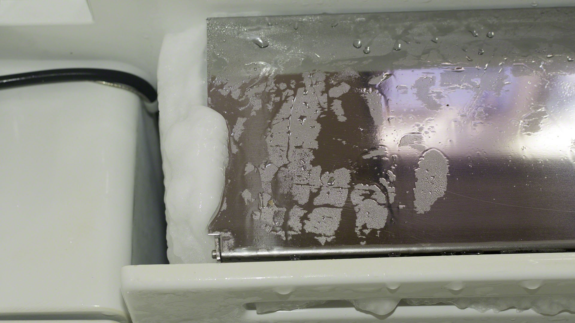 After over a month of opening the fridge in humid conditions, the evaporator plates have a very large amount of ice on them, rendering them energy-inefficient and it was time to defrost. The fridge contents were placed in thermal bags while I tried to get the process of melting ice to go quickly