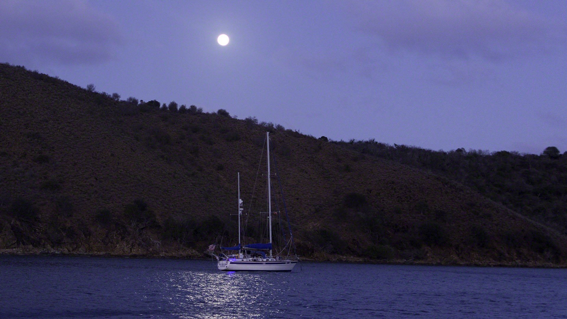 Tonight was a full moon and I spent it aboard but got a great view of the moon rising over Prickly Pear. As the night was clear and nearly cloudless I pulled out my little tablet with the star chart application so I could find and identify the planets (especially the one hovering close to the moon, which turned out to be Jupiter) but I couldn’t get the darned thing to track and I believe that the internal sensors had shut down to low power mode, so I’ll have to charge up the tablet and test it during daylight hours.