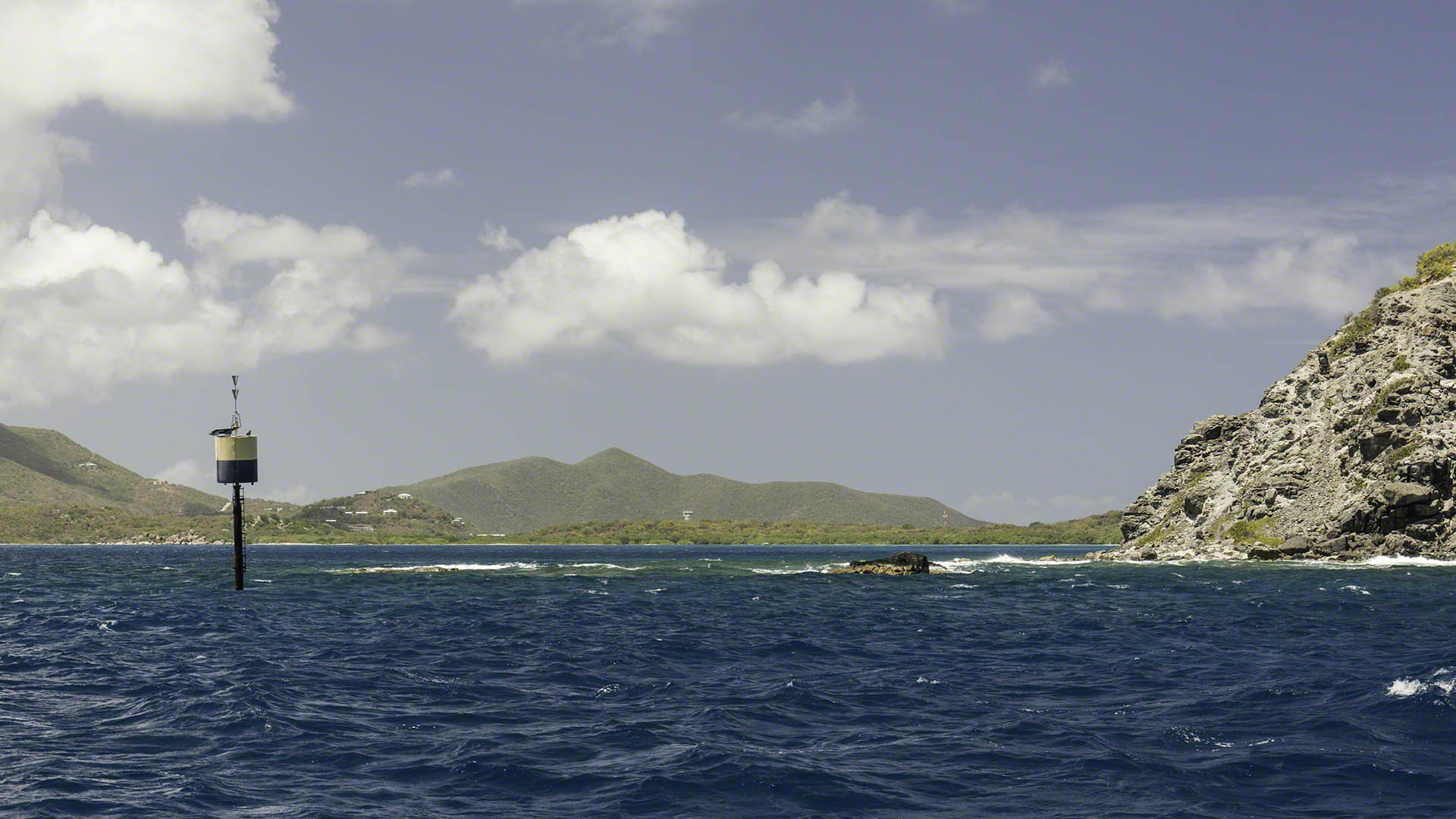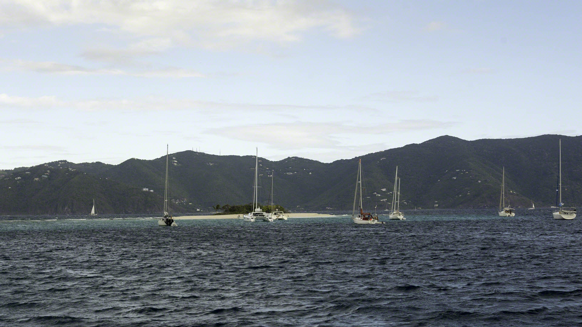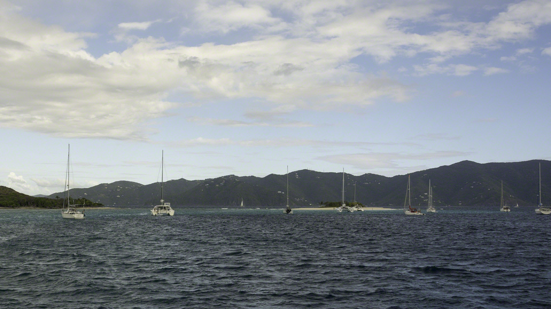After a lazy morning aboard and once I’d had my fill of using the internet connection I lifted up the anchor and sailed to Diamond Cay on Jost van Dyke, in preparation for clearing out of the BVI and into the USVI tomorrow. The winds were still very strong and I had two reefs in the main and one in the genoa despite the downwind sail and was still doing a good and comfortable 8 knots much of the time. I opted for the longer trip down the Sir Francis Drake channel rather than the direct route on the north side of Tortola because I didn’t want to roll around in the big swell today and wasn’t in a hurry anyway.