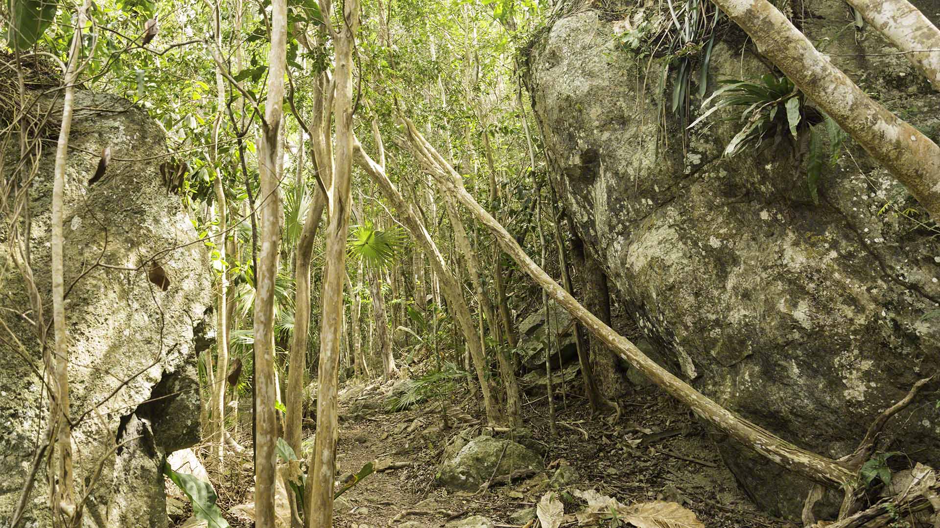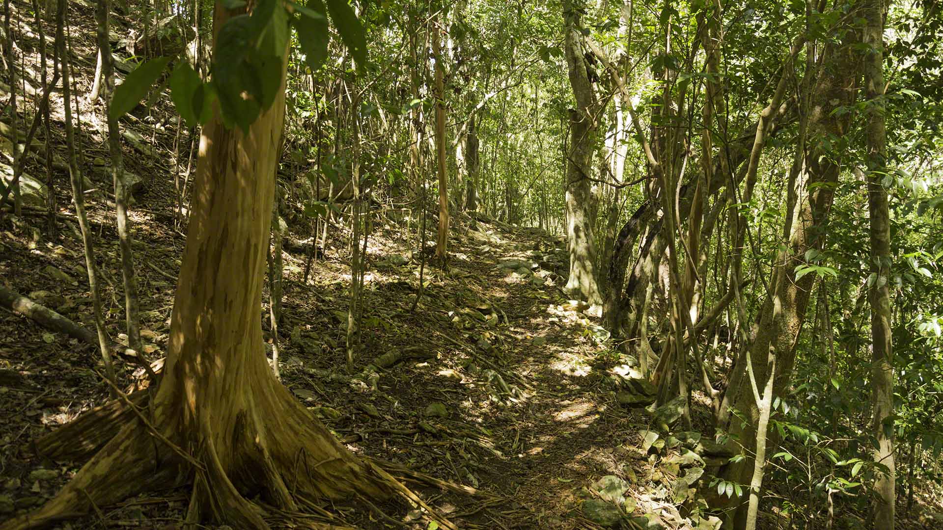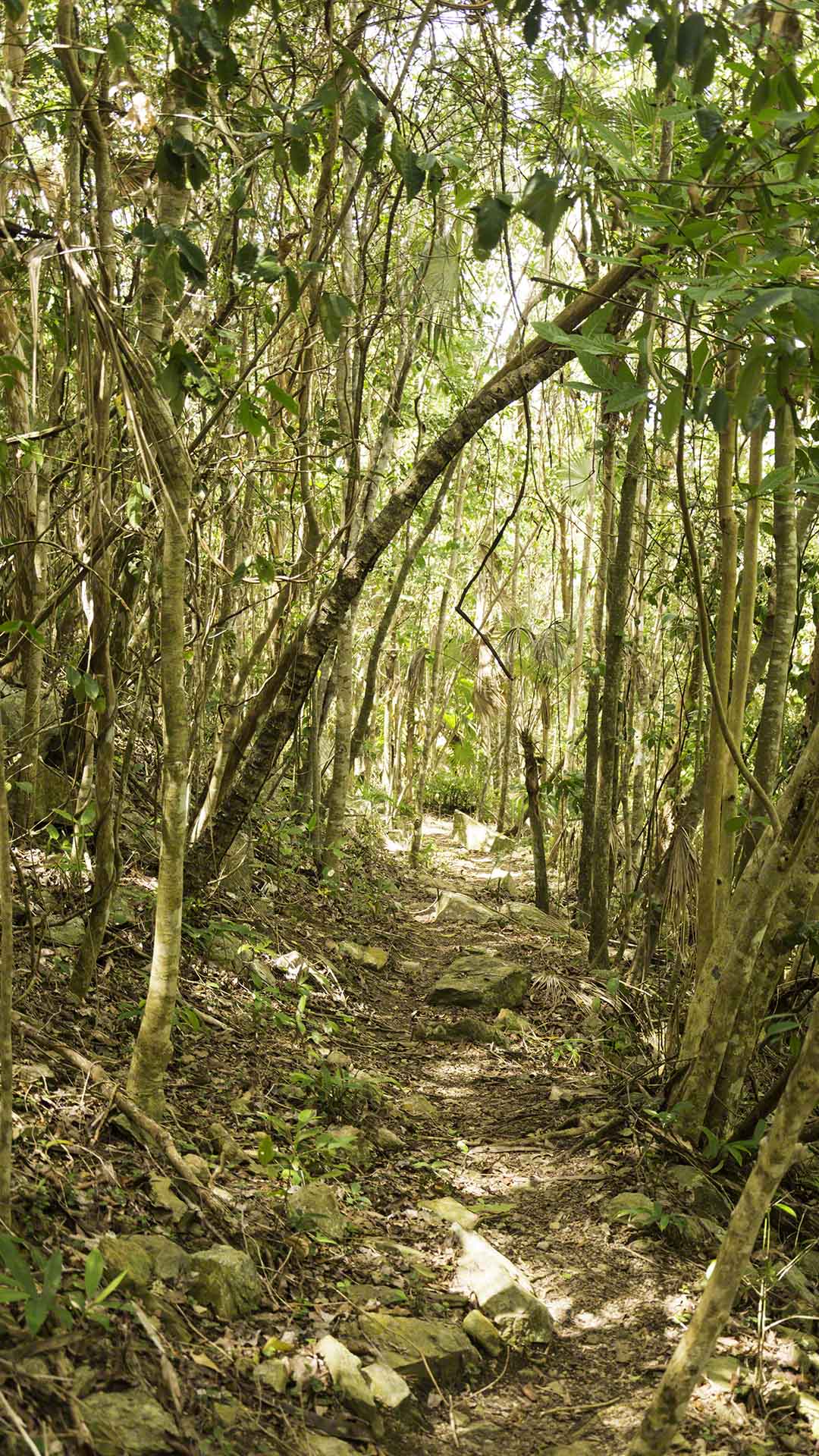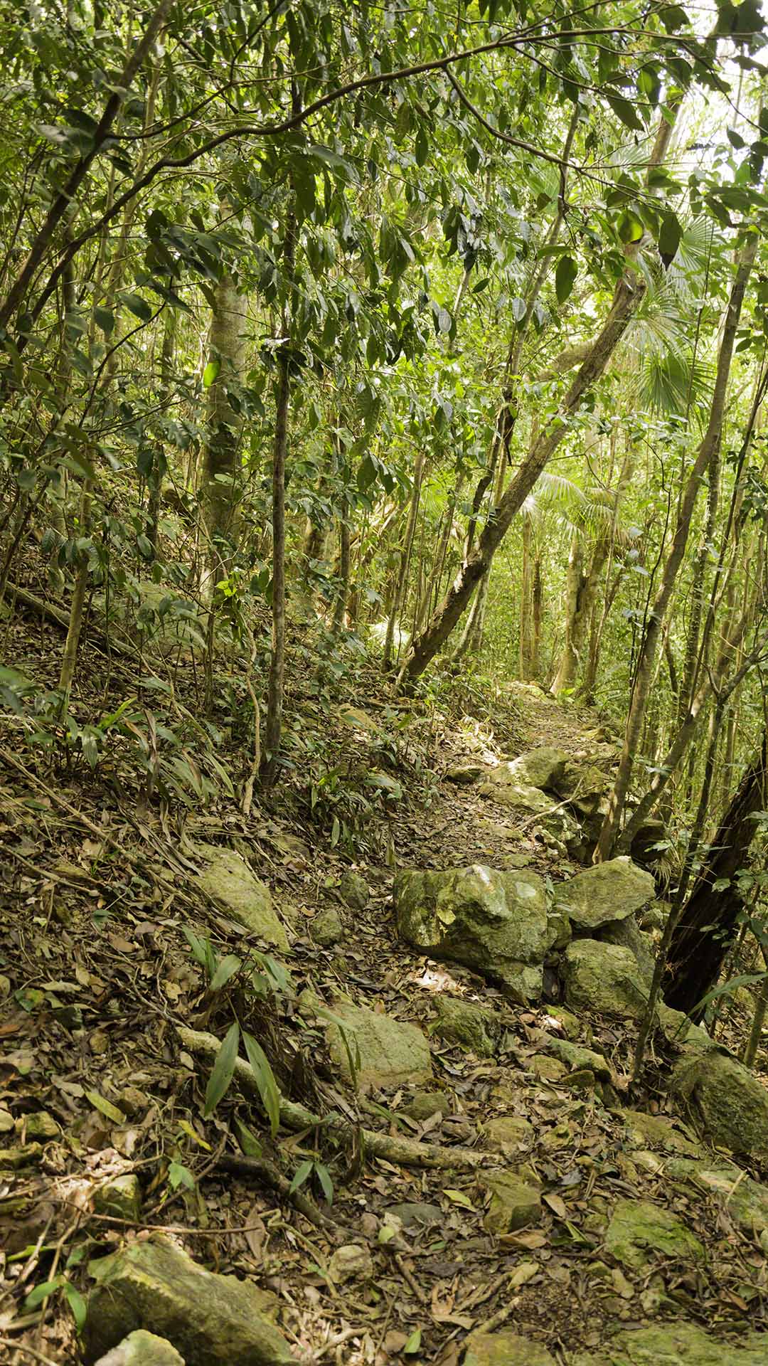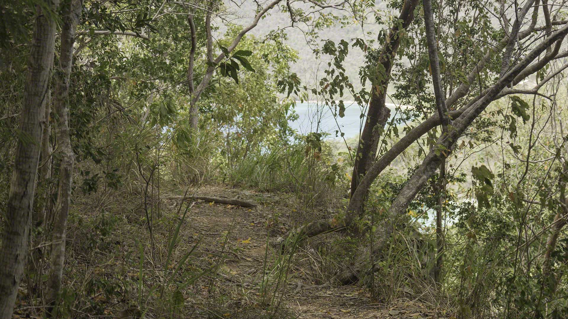 I decided to hike up the trail after all, that little bit of water should have been soaked up quickly. I took the āMaria Hope Trailā up the hill and it was a nice hike of about 1 mile up the steep side of the mountain. I had a my backpack with water and camera along, but the rainforest canopy was unbroken except for one small clearing which afforded a partial view of the beach at Maho and a distant view of the Soper’s Hole in the BVI. At the top of the hill was the beginning/end of another trail that went down the south side of the island to a beach, but I opted to return rather than continue onward and I might complete the trail tomorrow. Back at the boat I took the paddle board out for a trip around the anchorage, using the opportunity to put a bag of garbage into the bin at the same time.
