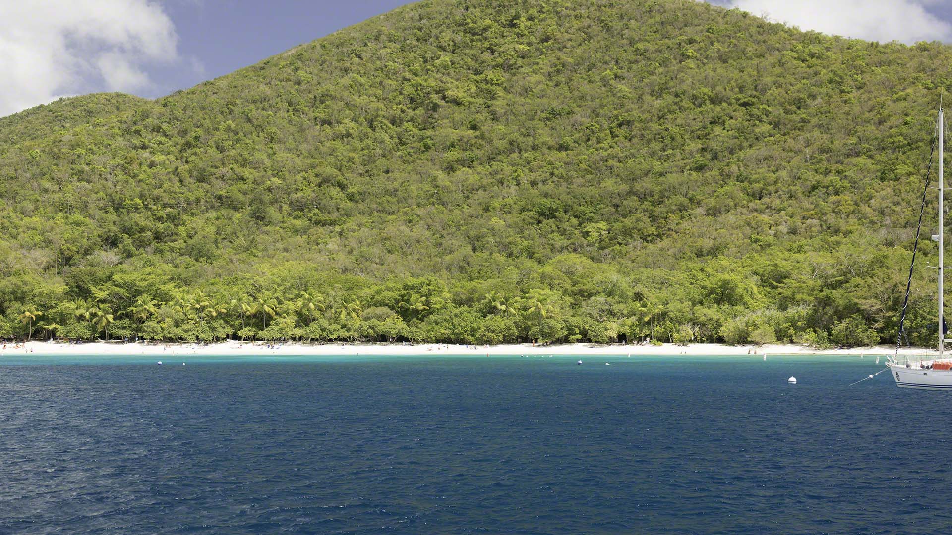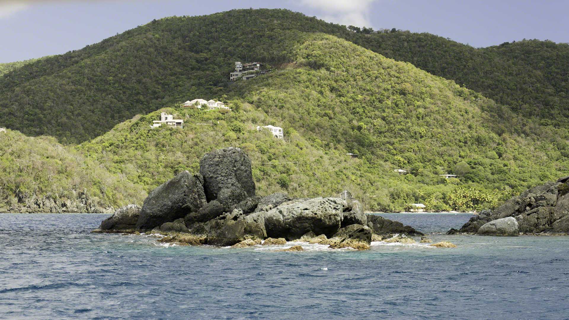 After getting some steaks and other supplies I returned to the boat and promptly left the Caneel Bay anchorage. The ferry and power traffic zipping along at flank speed just outside the anchorage makes for a very rolly location, and due to my sugar-scoop stern the wakes slam into Zanshin at times and the whole boat shakes and rolls; much more so than when sailing and slamming into waves from the front.