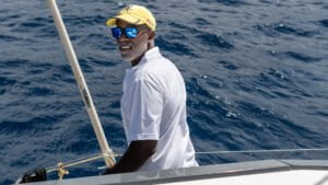 This year’s Antigua Sailing Week began on April 28th and ran through May 6th. The weather was perfect with sunshine each day, light to medium winds and correspondingly benign sea state. We did have some mild and calm days and the last two were rough on the committee boat and crew. Our crew aboard the committee boat “A” consisted of:
