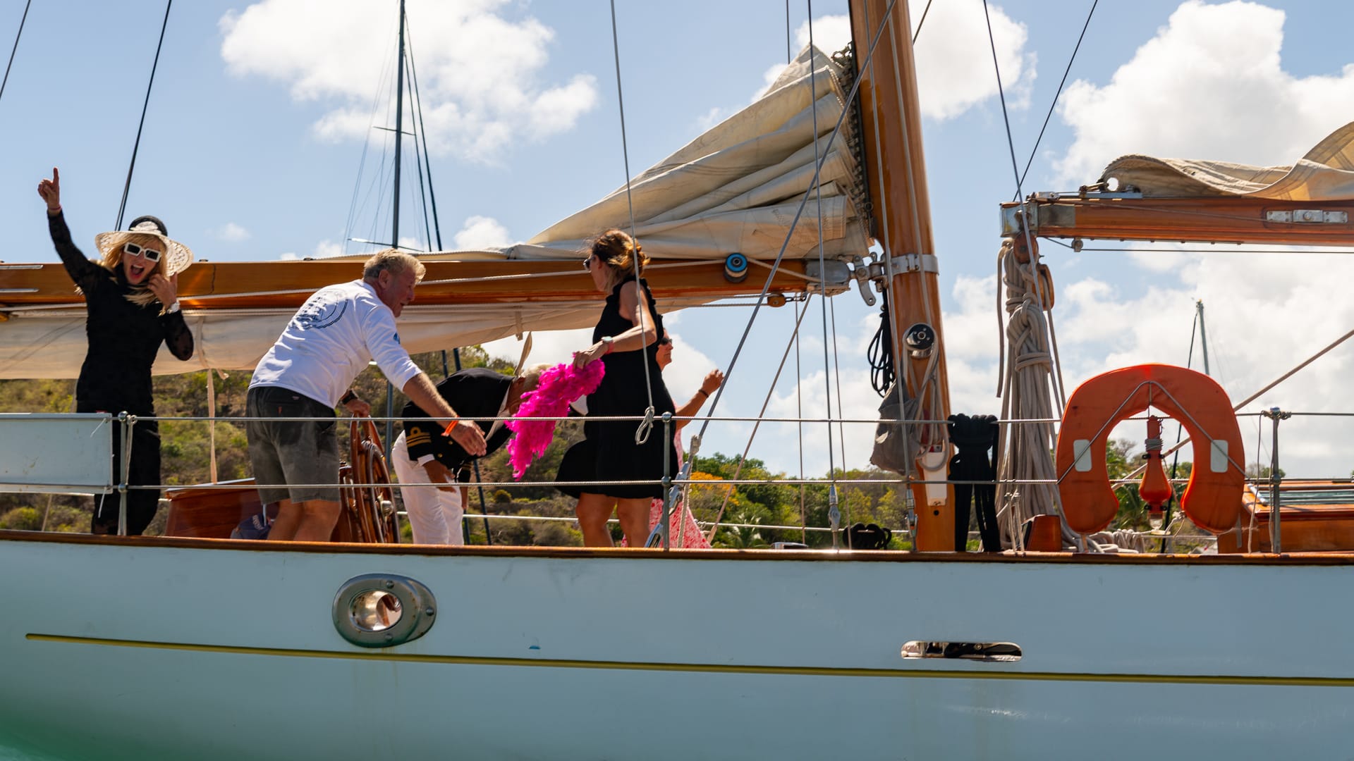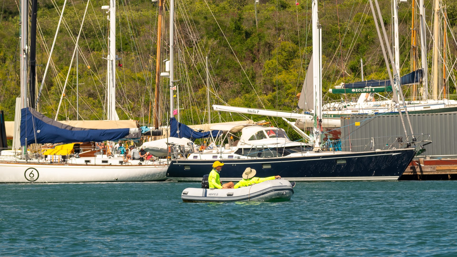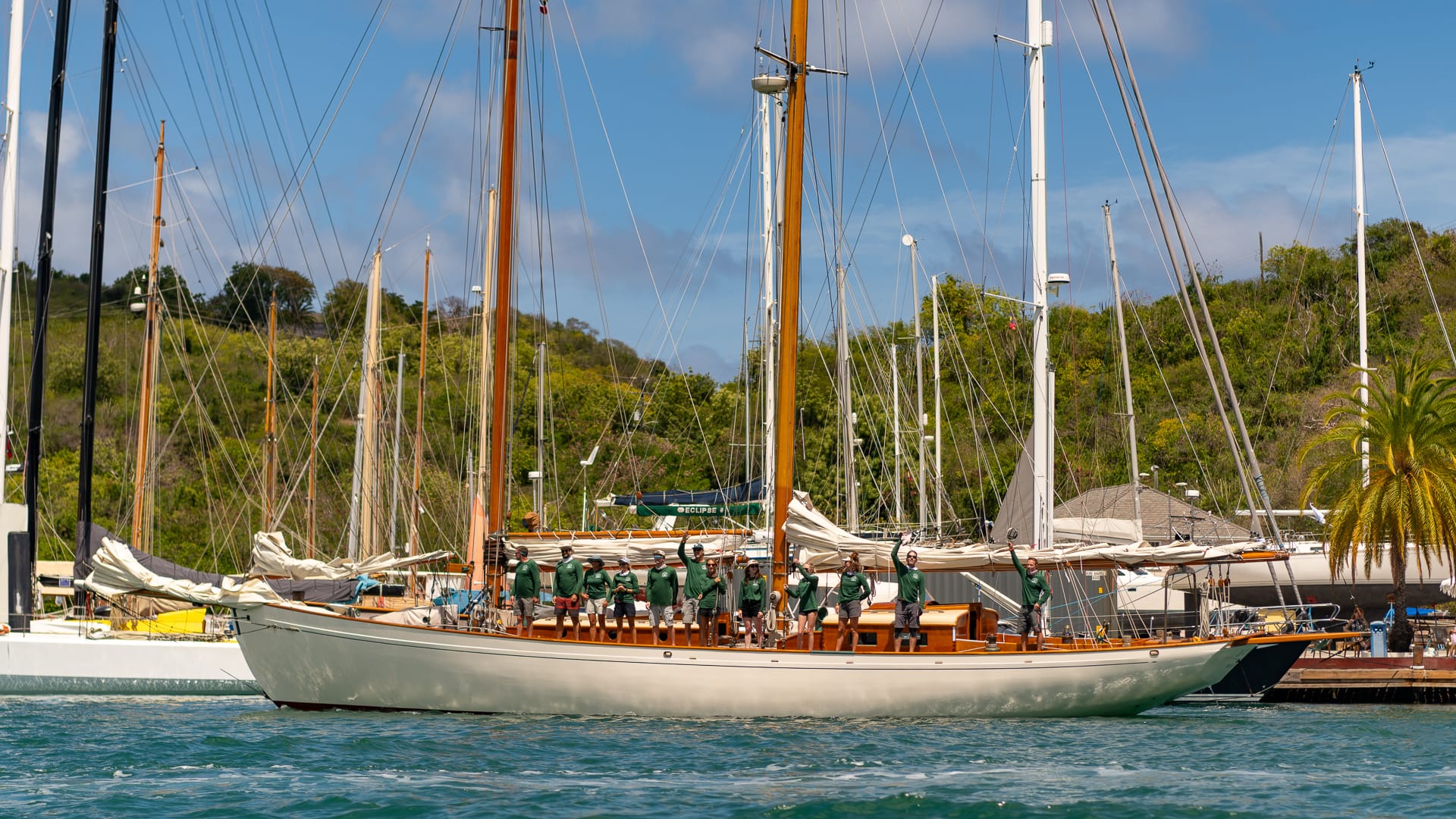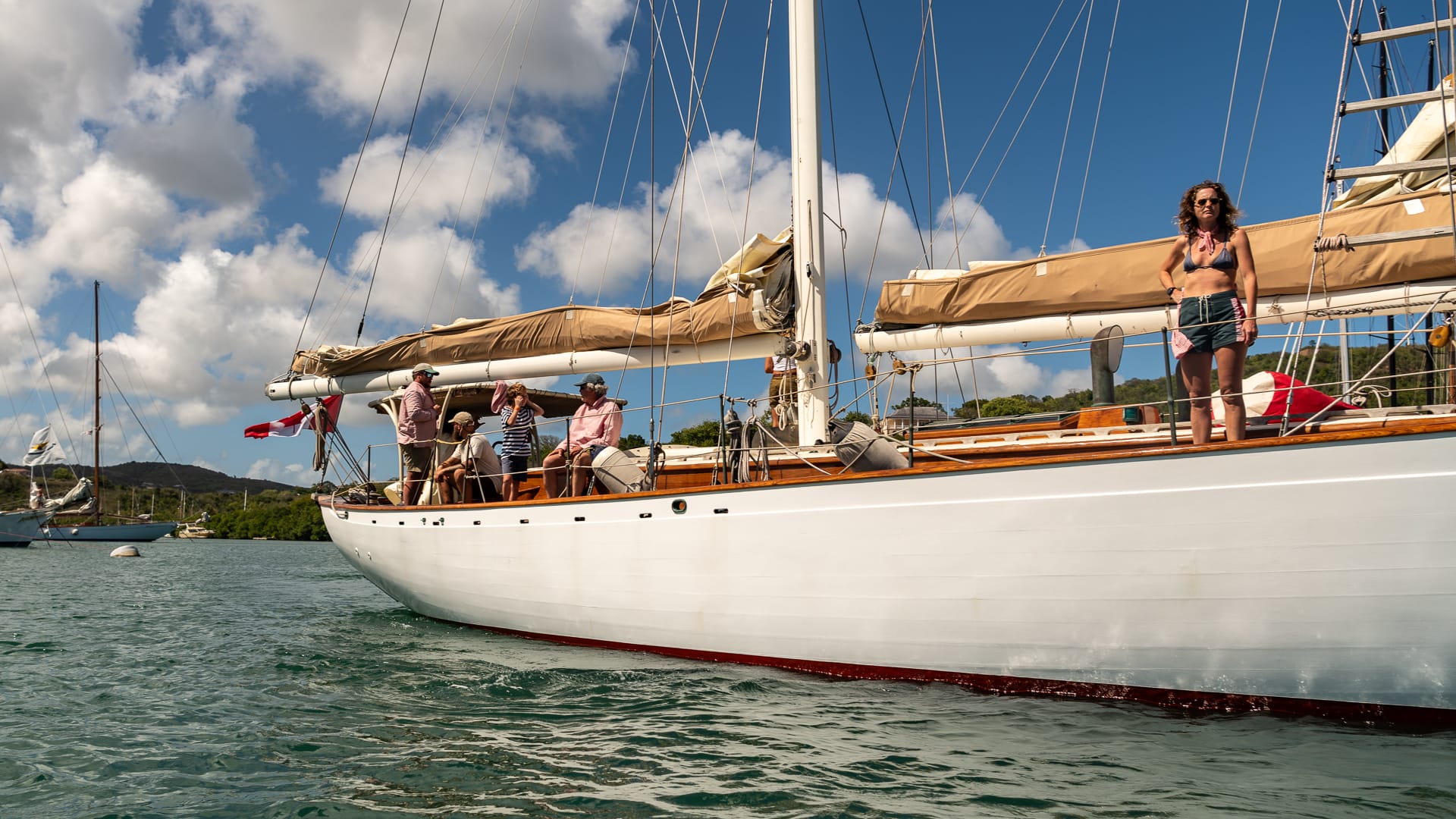 This event features some of the most appealing and elegant classic yachts to be found in the Caribbean. I volunteered as a “dinghy wrangler” and therefore don’t have any pictures from aboard the committee vessel, but on the last day, the yachts came by in a parade, and I was able to get some pictures as they circled the harbour.